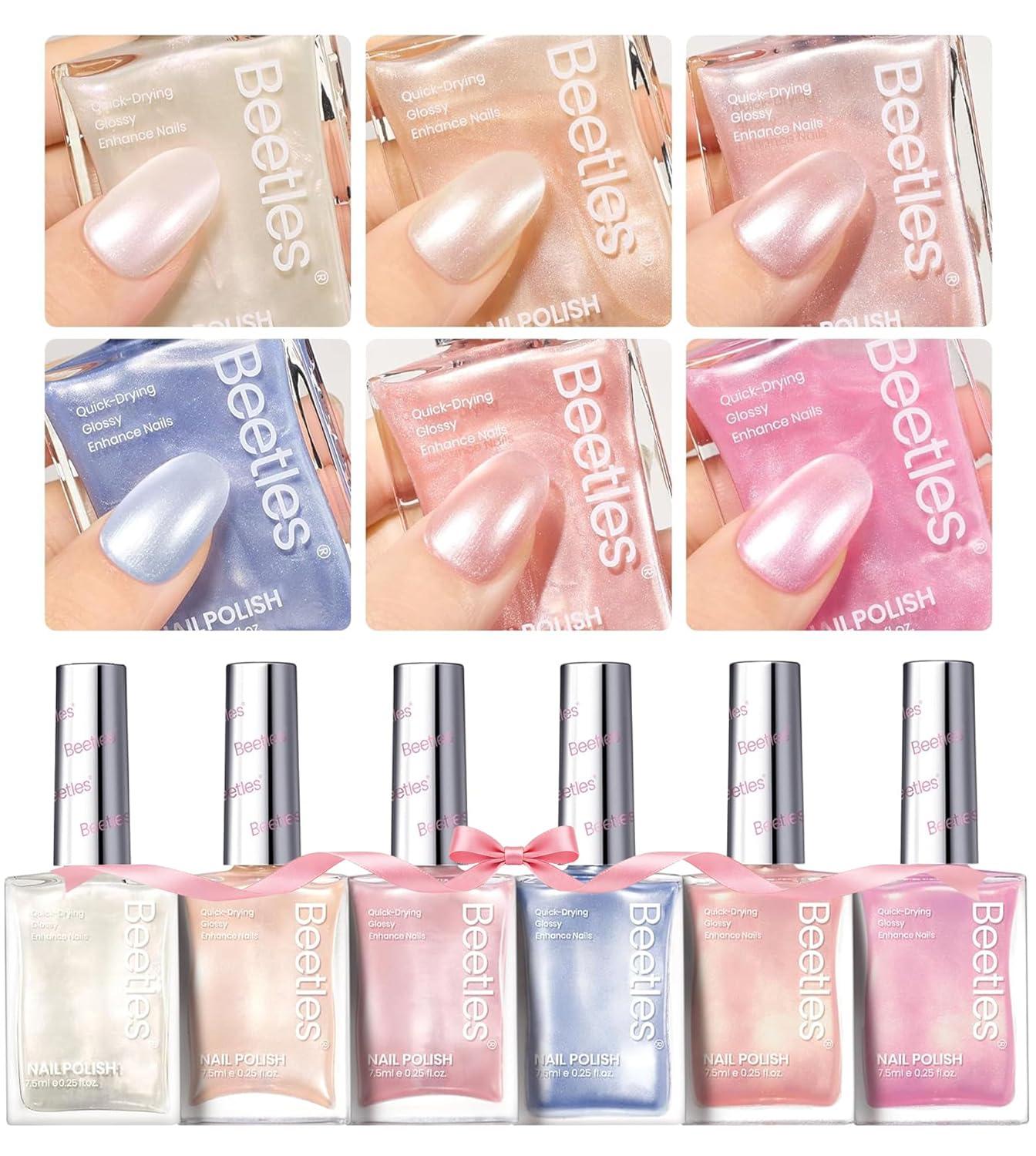 Beetles Pastel Nail Polish Set - Butter Kiss, 6 Colors Glitter Spring Nail Polish Quick Dry Set, Spring Nails Art, Long Lasting Shine DIY Manicure Easter Nails Gift for Her(Pastel Season)