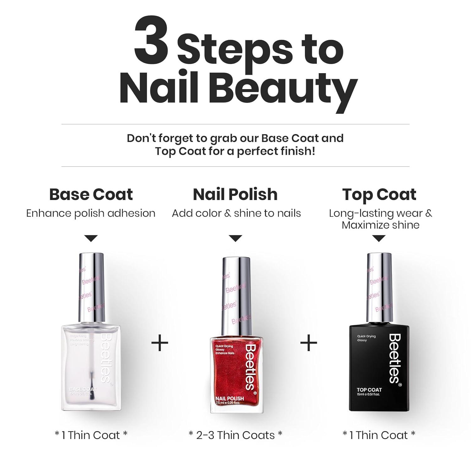 【Long-Lasting Shine】Beetles quick dry nail polish enjoys a bright color and high gloss that lasts for at least 8 days without discoloration or paint peeling. It is very durable, and is an ideal choice for festivals or special occasions, as well as an ideal gift for nail lovers! It need to be used with a base coat and top coat!This item does not include base&top coat, which needs to be purchased separately.
