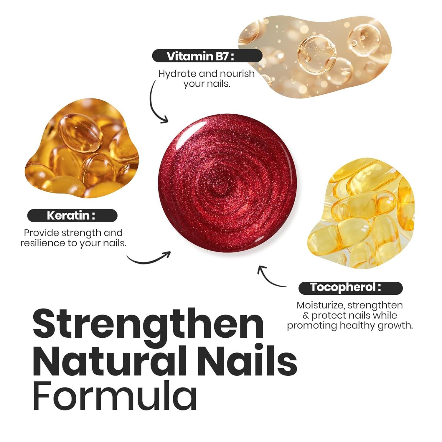 【Nail Care Ingredients】This healthy nail polish formula contains at least 3 ingredients to protect nails, which can strengthen and thicken nails and accelerate nail repair, so that your nails have a beautiful appearance and also make your nails healthier!