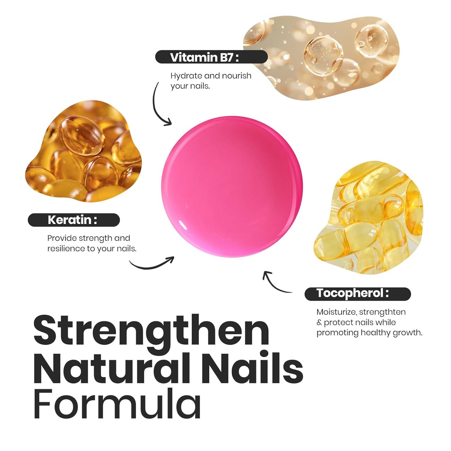 【Nail Care Ingredients】This healthy nail polish formula contains at least 3 ingredients to protect nails, which can strengthen and thicken nails and accelerate nail repair, so that your nails have a beautiful appearance and also make your nails healthier!
