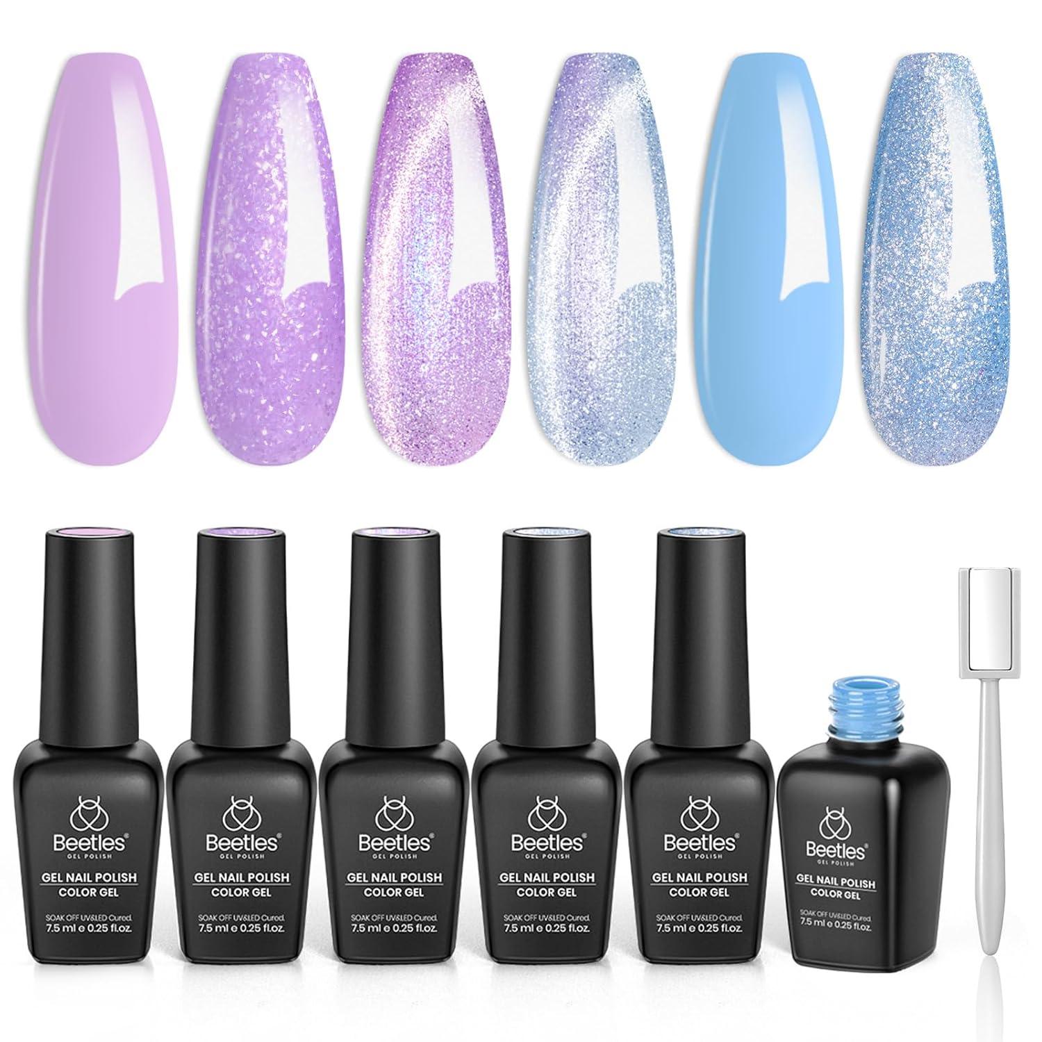 imageBeetles Petal Charm Cat Eye Gel Nail Polish Set  6 Colors 15ML Spring Gel Polish Kit Glitter Pink Purple Blue Orange Red Green Magnetic Effect Soak Off UV Nail Art DIY Manicure Gift for WomenDreamy Pink Purple
