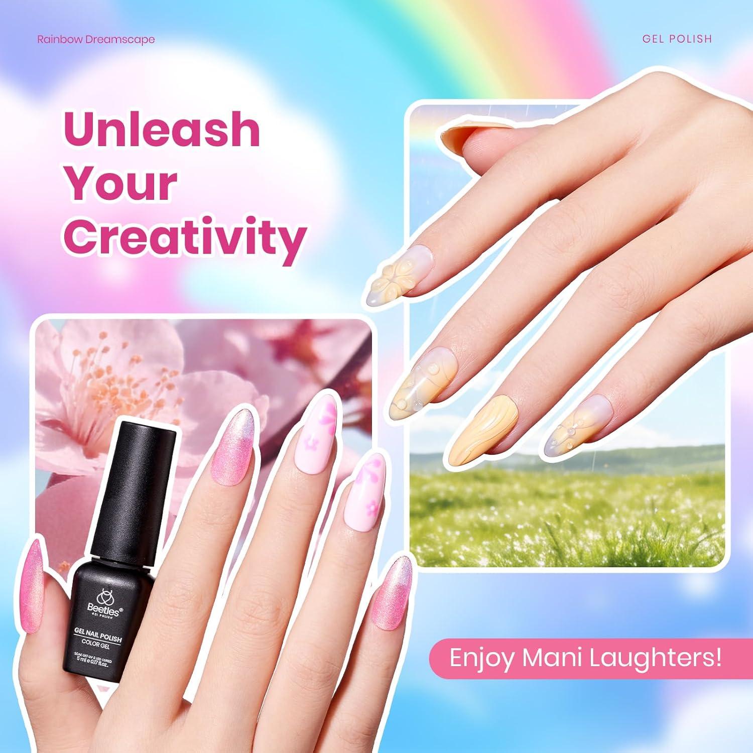 Beetles Pink Gel Polish Set - Pinks Escape 15ML/0.51Fl Oz, 6 Colors Hema Free Pink Gel Nail Polish Set, Same Color Same Bottle, Valentines Nails, Long Lasting Soak Off UV LED Nail Lamp Gifts for Her(Rainbow Dreamscape)