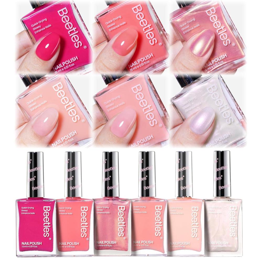 imageBeetles Pink Nail Polish Set  Hearts Aflutter 6 Colors Hot Pink Red Quick Dry Light Pink Spring Nails Polish Set Salon Long Lasting Glitter Gifts for HerLuminous Moments