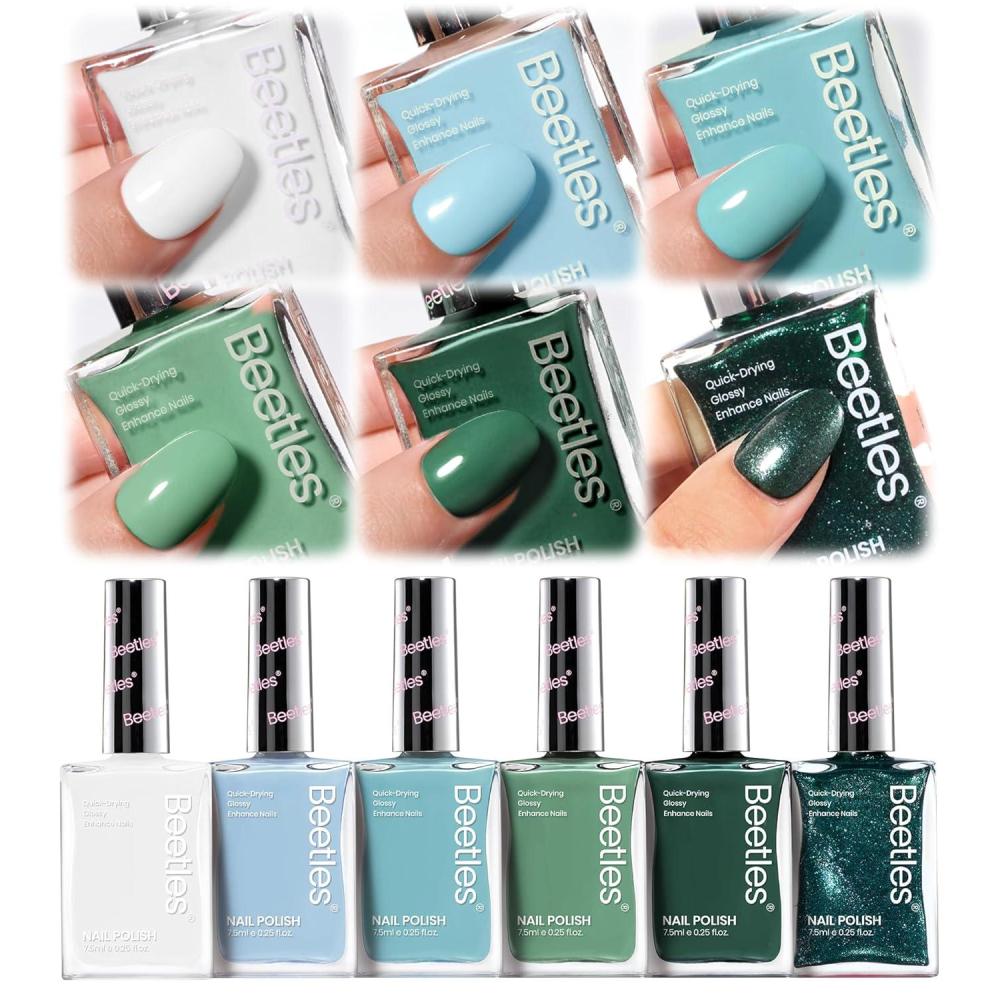 Beetles Pink Nail Polish Set - Hearts Aflutter 6 Colors Hot Pink Red Quick Dry Light Pink Spring Nails Polish Set, Salon Long Lasting Glitter Gifts for Her(Serene Lake)