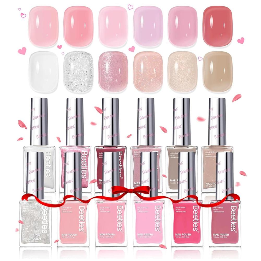 Beetles Pink Nail Polish Set – Love’s Prism 12 Colors Valentine Quick Dry Nail Polish Set 5ml/0.17 Fl Oz, Salon Long Lasting DIY Nails Art Spring Valentines Nails Gifts for Her(Serenely Chic)
