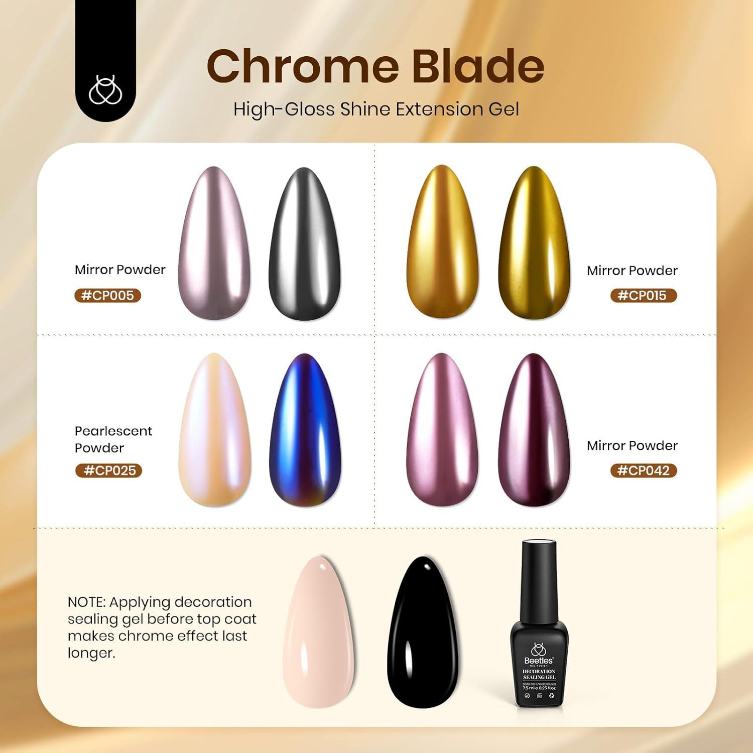 imageBeetles Poly Nail Gel Kit  6 Colors Jelly Nude Extension Kit with Slip Solution Builder Nail Enhancement for Beginner ampamp Professional Long Lasting DIY Home Christmas Gift for Women UV ampamp LED NeededChrome Blade