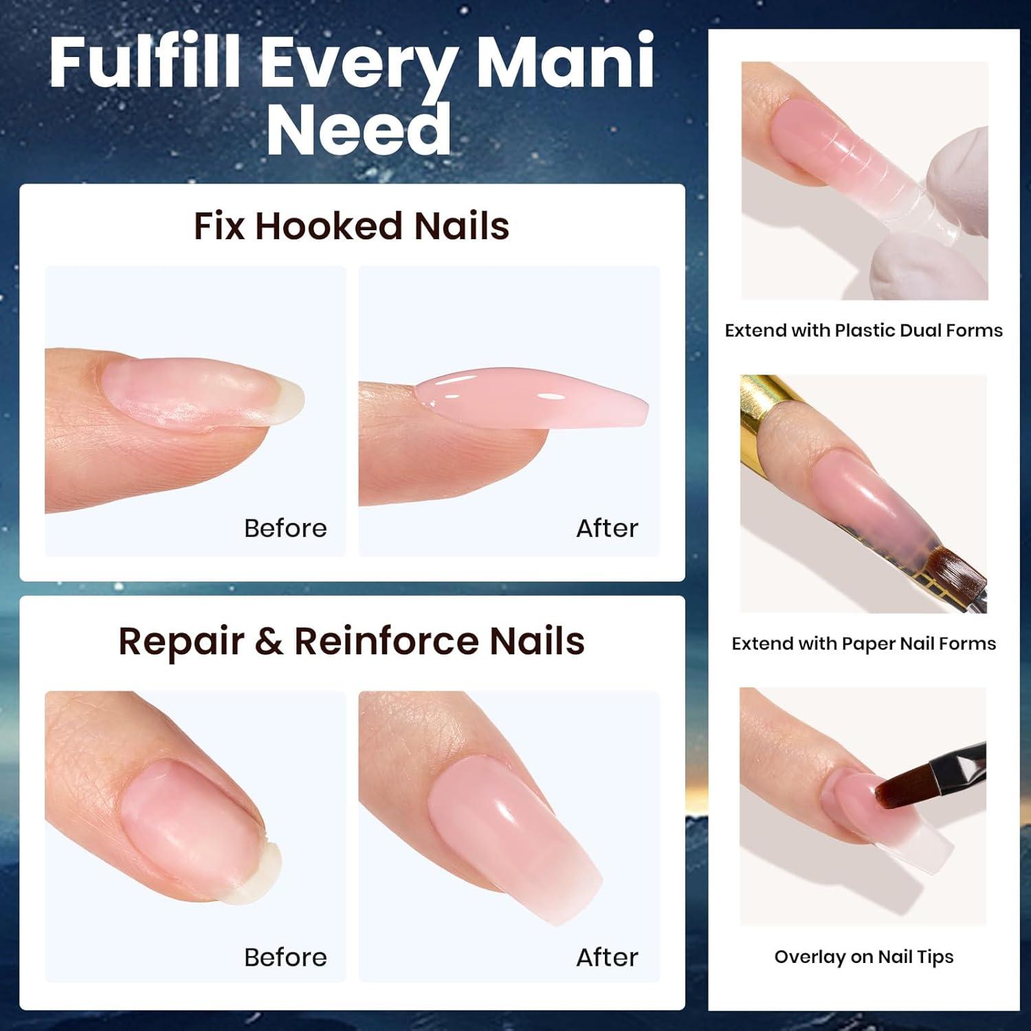 Fast Extension & Remove Tips:You can easily extend your nails with 6pcs poly nail gel set of pink nude pink neutral nail colors in 3 minutes, making your nails light, natural and beautiful.If you want to change the nail art style and remove the nail extension gel, you can file the nail extension gel down and then buffer it. A nail drill machine will save you time and help to remove the nail in a faster and cleaner manner