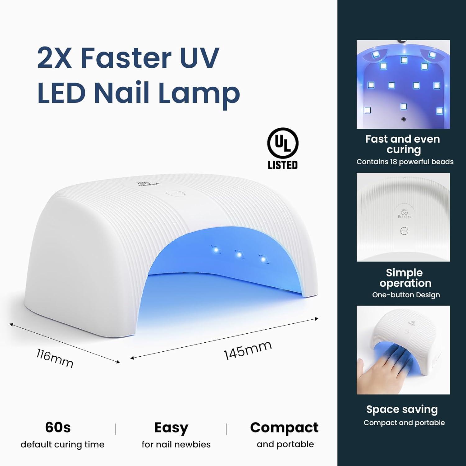 Portable Nail Lamp:High-quality LED beads with 50,000+ hours lifespan test, longer service life last up to 5 years. Though the 6w mini nail lamp is tiny and light, it is powerful, gives you unimpeded curing almost all nail art gel, such as base top gel & nail glue, gel nail polish, builder nail gel, and nail extension gel. Elevate your holiday style with the gel x nail kit