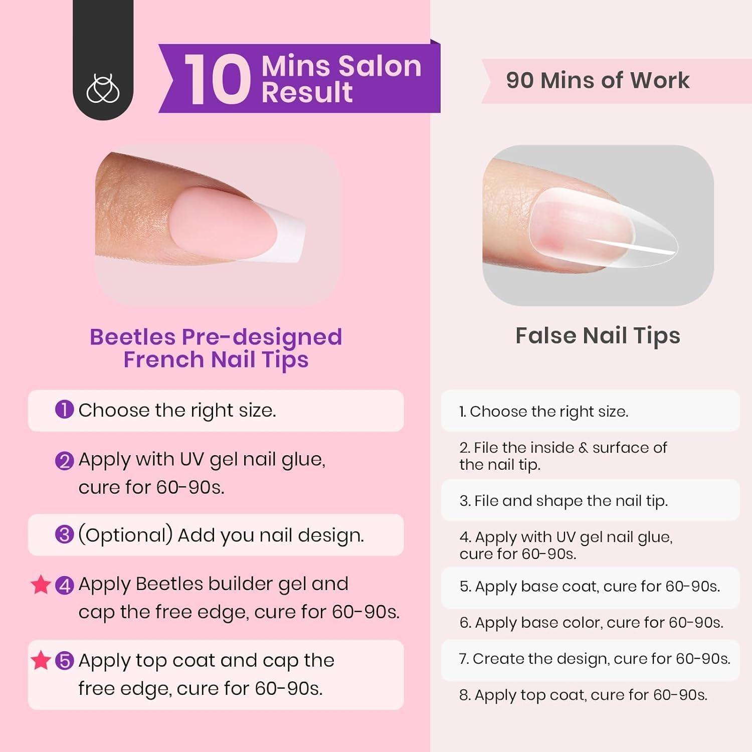 Updated Nail Tips Design:We enhance nail tips design with a reinforced front edge for extra durability, ensuring it won't bend easily and delivering that flawless salon-quality finish. The slim rear edge seamlessly hugs your nail's contours, providing a comfortable fit without any bulky feeling.