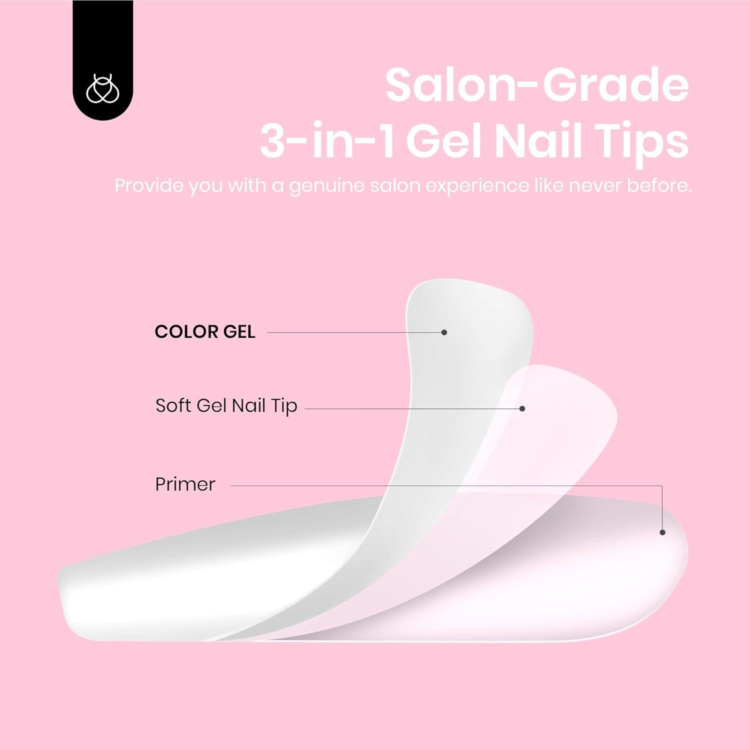 Updated Nail Tips Design:We enhance nail tips design with a reinforced front edge for extra durability, ensuring it won't bend easily and delivering that flawless salon-quality finish. The slim rear edge seamlessly hugs your nail's contours, providing a comfortable fit without any bulky feeling.