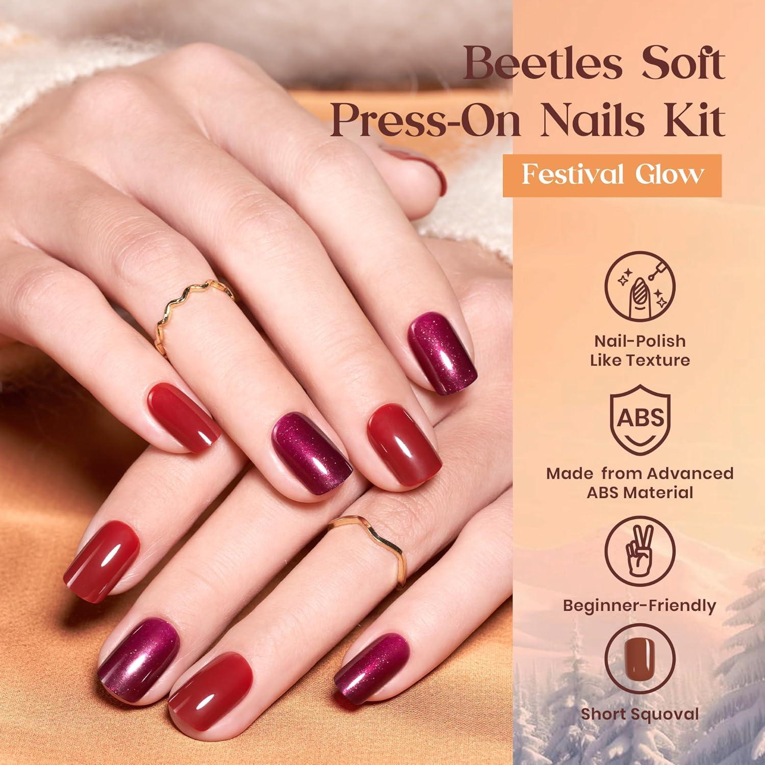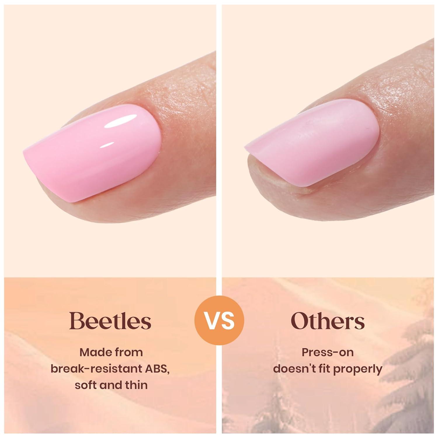 【High Quality】Beetles press on nails pack are like the texture of nail polish, the nails are soft, light and thin and made of high quality ABS material, which is not easy to break. No need base coat, convenient and easy for nail art, also can be reused. The bottom of the false nail is flexible that can fit your natural nails well and don’t hurt our nail edges and the top is more solid to avoid folding.