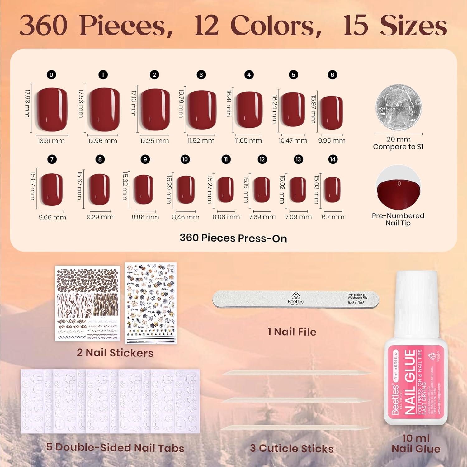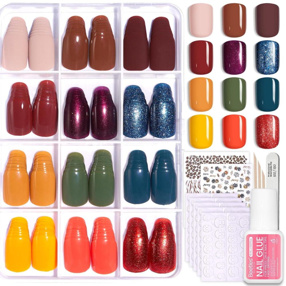 Beetles Press On Nails Kit - Creamy Drizzle | 720Pcs 24 Colors Short Square Press On Nails | 15 Sizes French Glossy Glitter Jelly With Nail Glue & Nail Tabs Stickers, Fake Nails Kit Art For Women(C-Short Square-360PCS-Festival Glow)