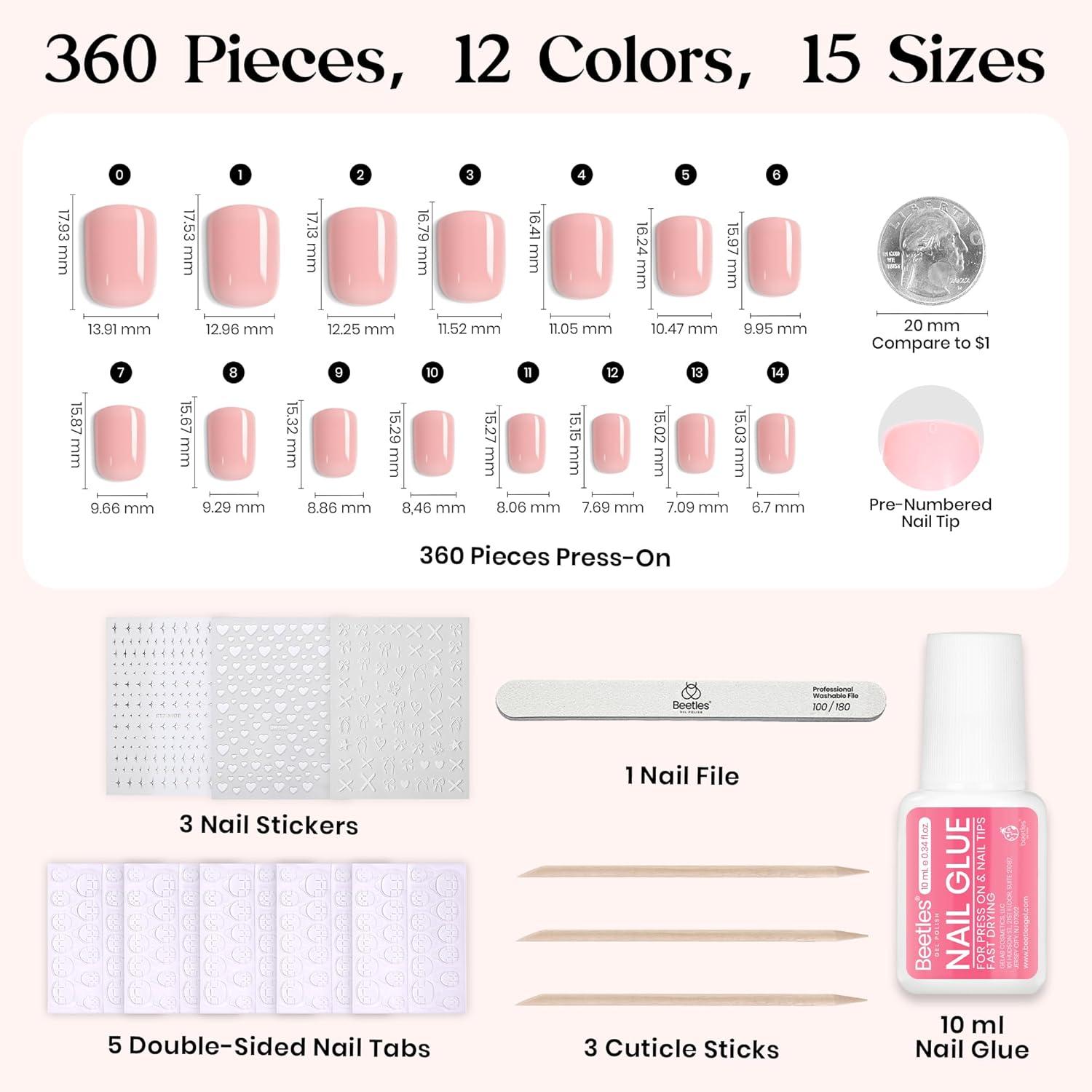Beetles Press On Nails Kit – Creamy Drizzle | 720Pcs 24 Colors Short Square Press On Nails | 15 Sizes French Glossy Glitter Jelly With Nail Glue & Nail Tabs Stickers, Fake Nails Kit Art For Women(C-Short Square-360PCS-Festival Glow)