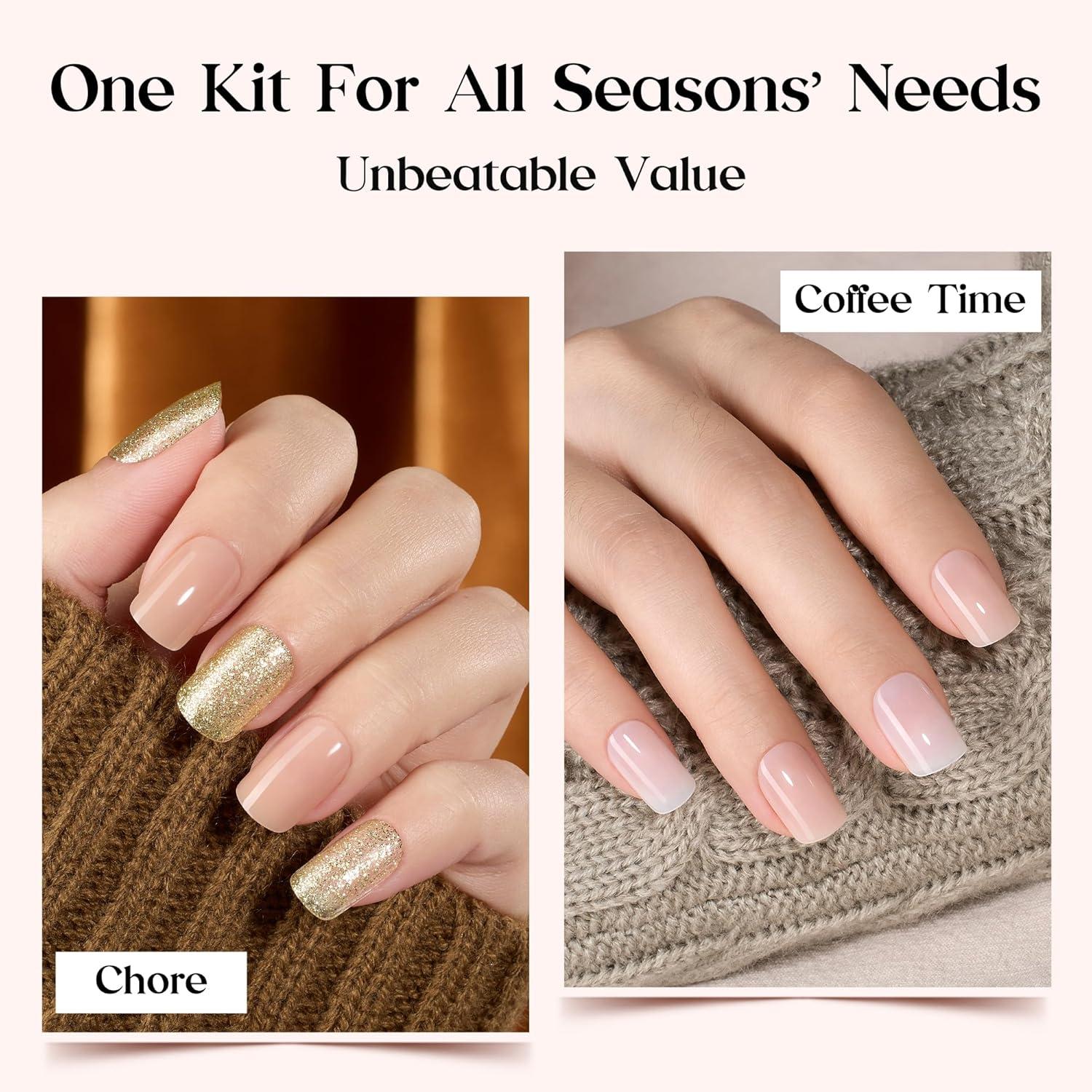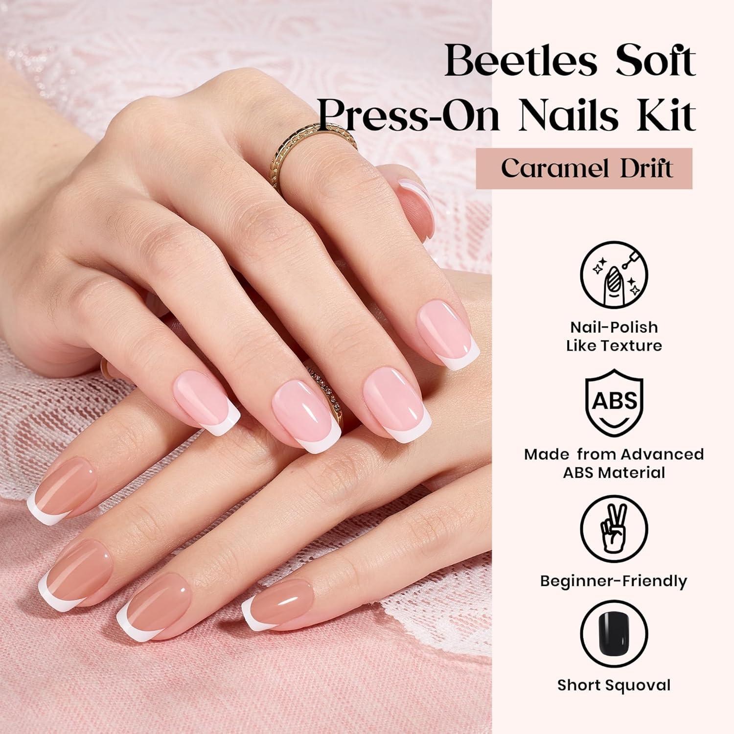 Beetles Press On Nails Kit - Creamy Drizzle | 720Pcs 24 Colors Short Square Press On Nails | 15 Sizes French Glossy Glitter Jelly With Nail Glue & Nail Tabs Stickers, Fake Nails Kit Art For Women(C-Short Square-360PCS-Caramel Drift)
