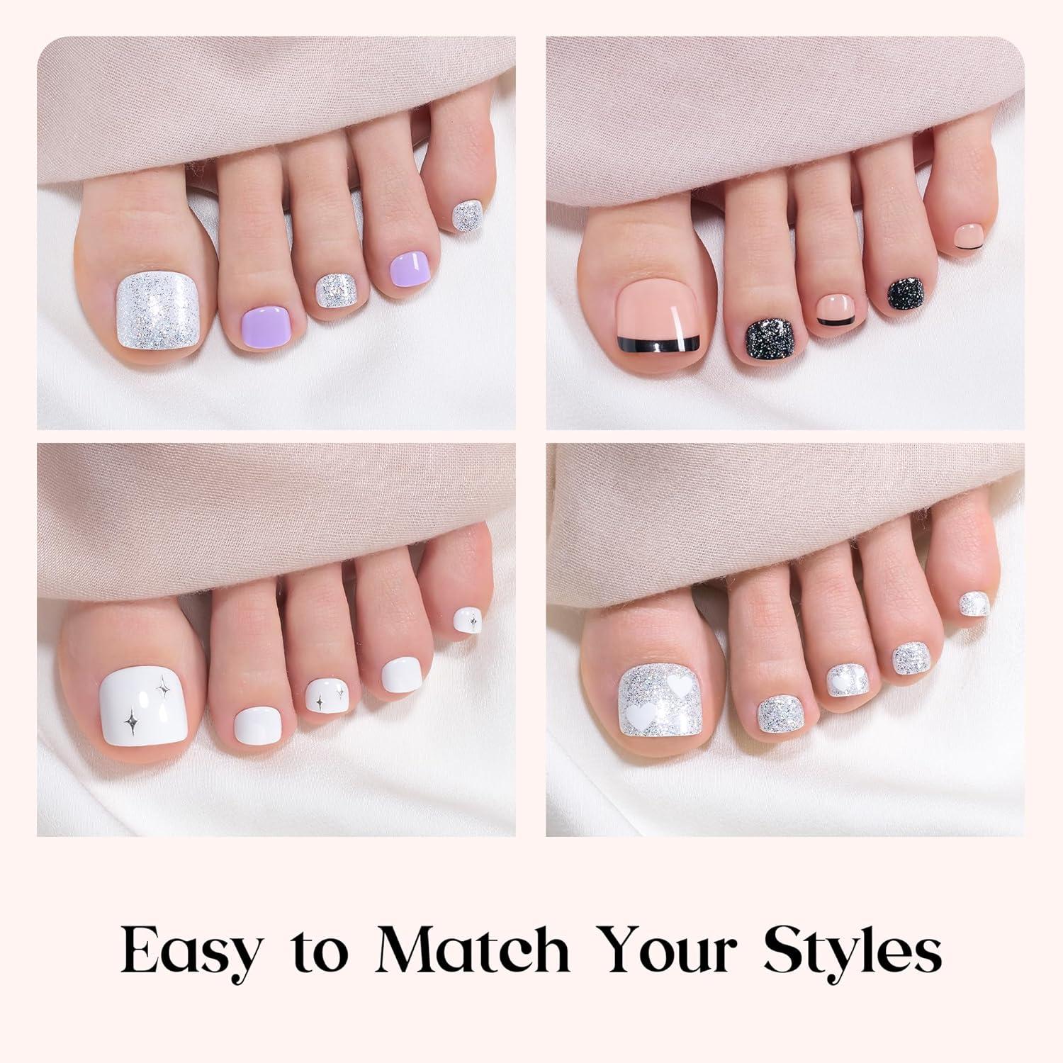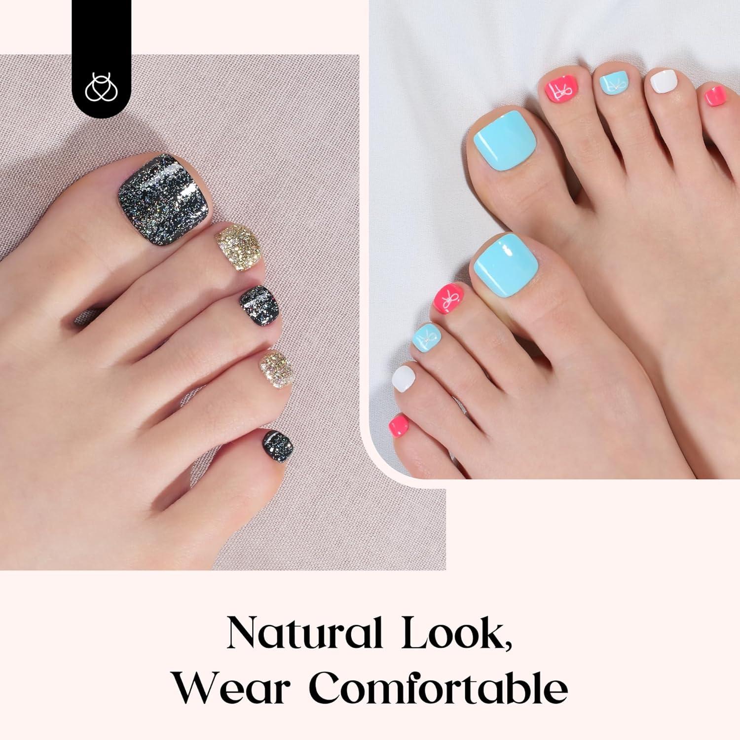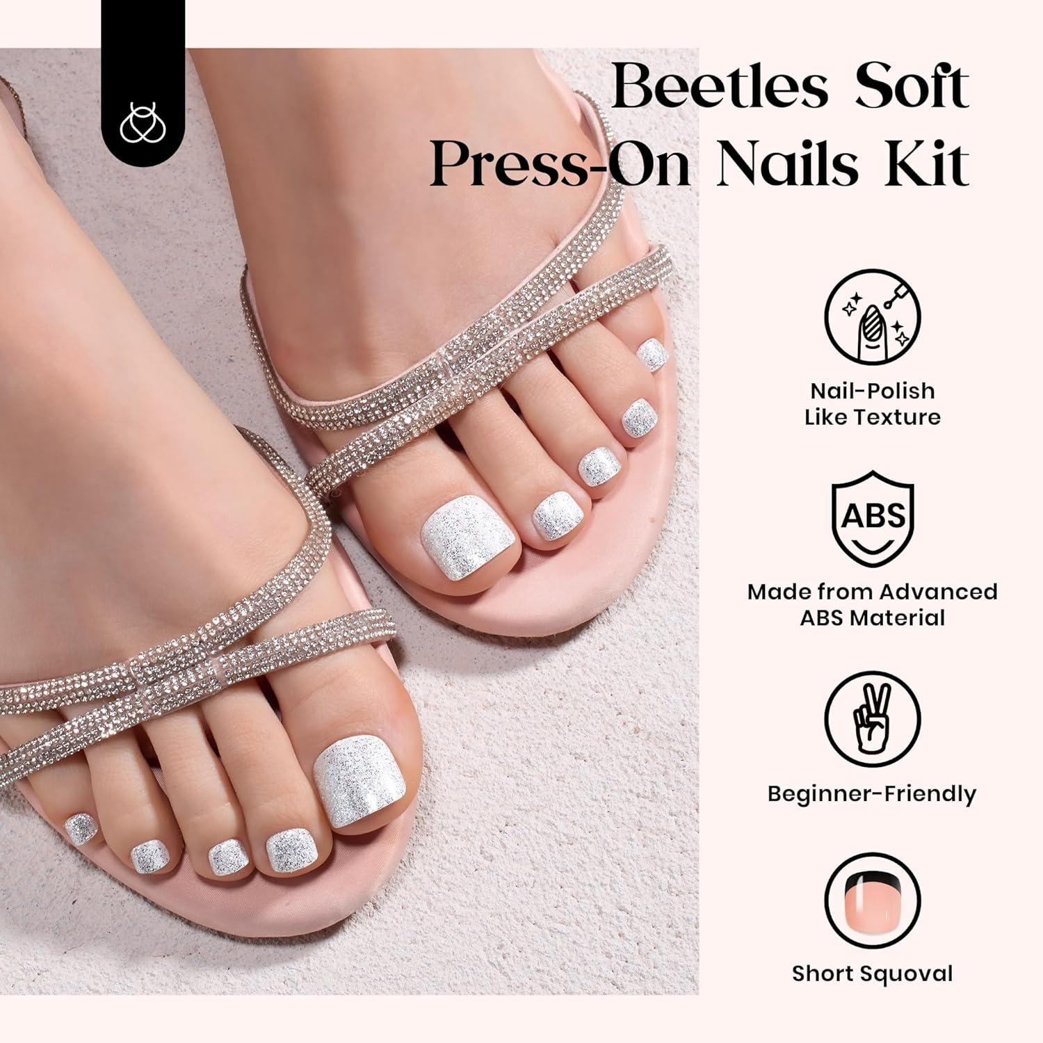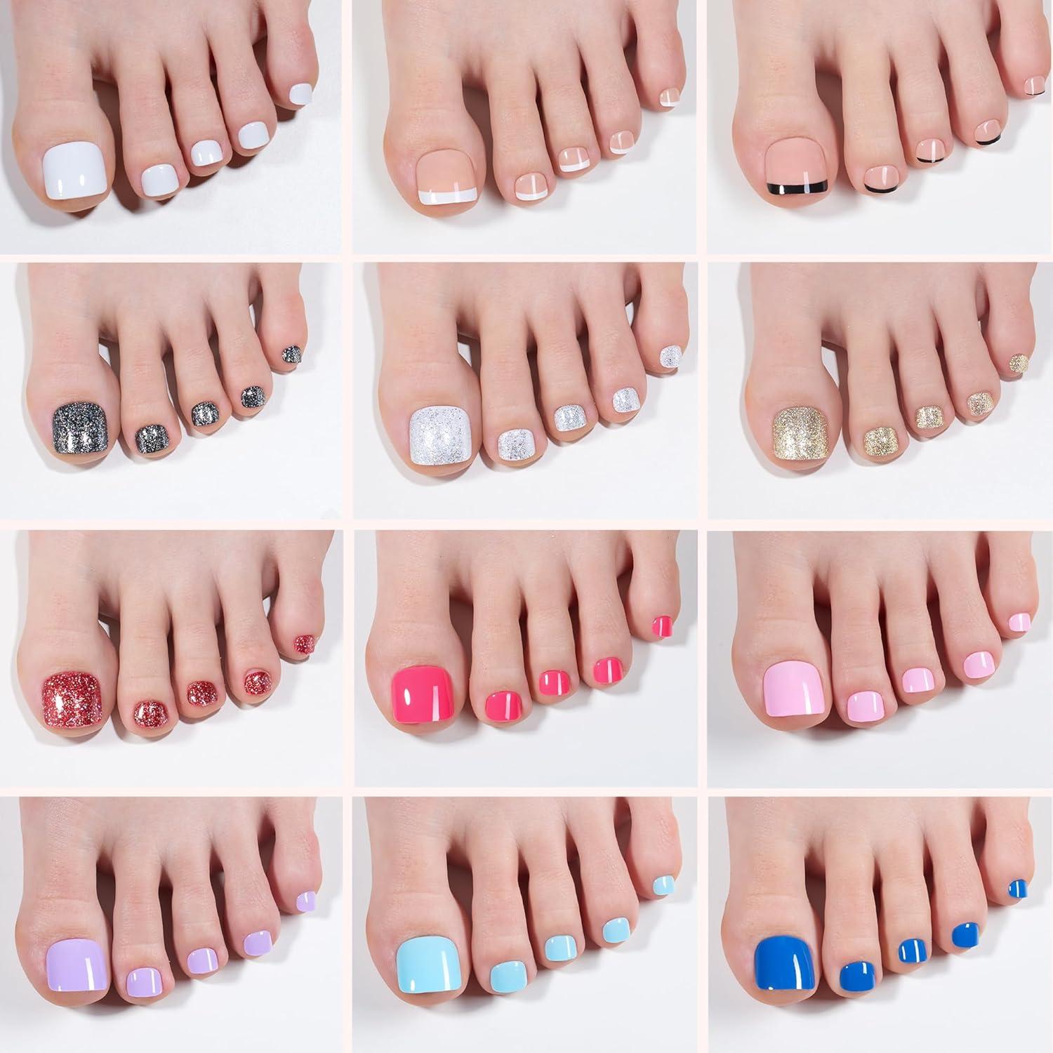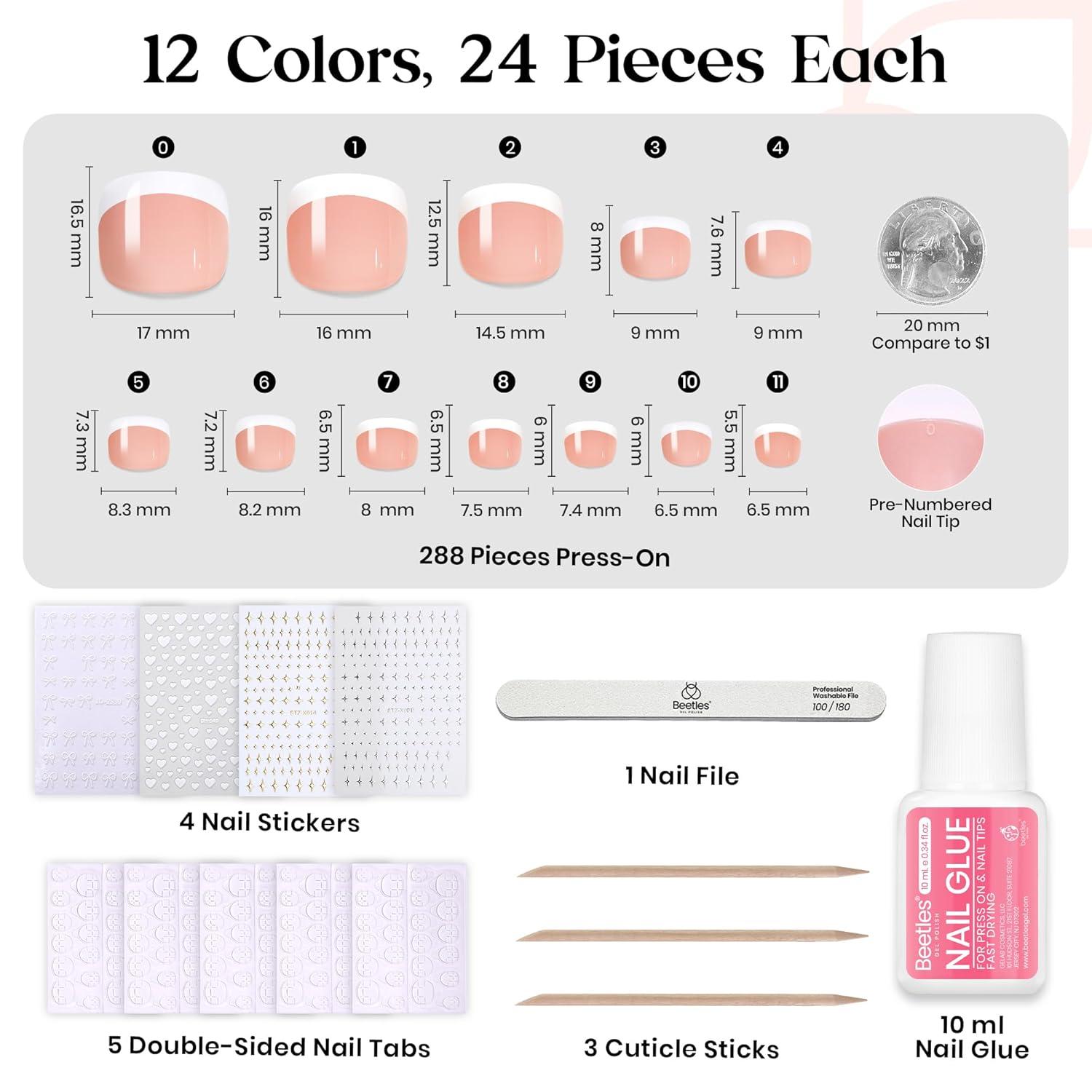 Beetles Press On Nails Kit - Creamy Drizzle | 720Pcs 24 Colors Short Square Press On Nails | 15 Sizes French Glossy Glitter Jelly With Nail Glue & Nail Tabs Stickers, Fake Nails Kit Art For Women(D-Toenails Short Squaval-288PCS)