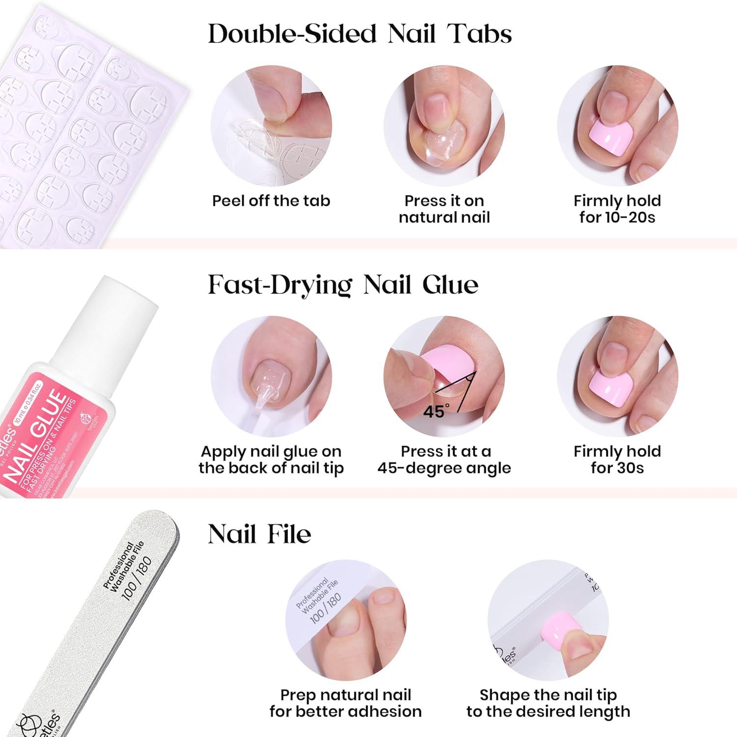 【Natural & Functional】These short fake nails fit our natural nails well and make the manicure look more natural. With short square design, it is cute and convenient. The shorter length won't affect our normal life, no matter you are working, doing housework or traveling, you don't have to worry about peeling or chipping.Great value.