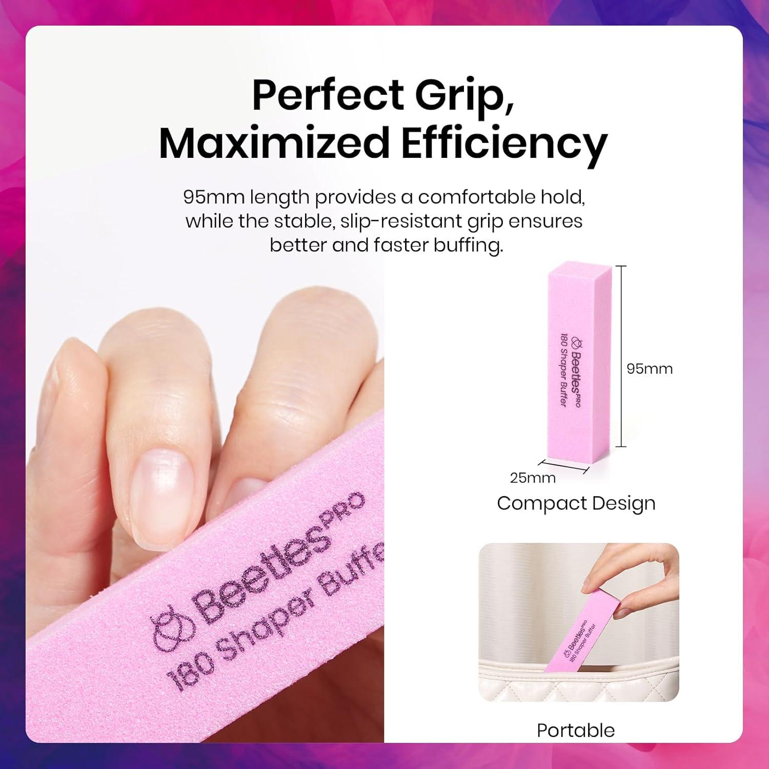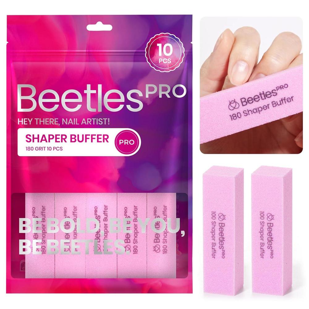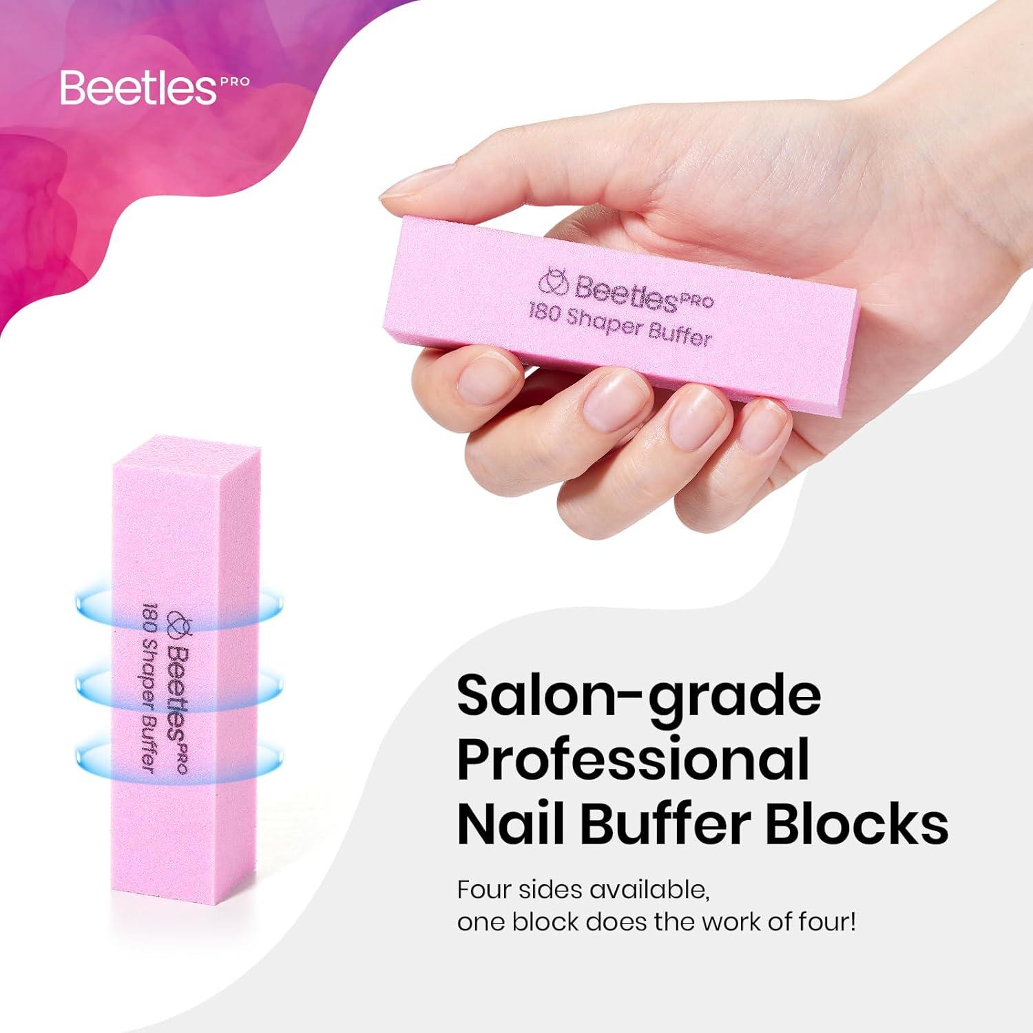 Beetles Pro 10-Pcs Nail Buffer – Professional 100 Grit Sanding Blocks Nail Files and Buffers 4-Sided Pink Nails Files for Acrylic, Gel & Natural Nails – Salon Quality Manicure Tool(10 Pcs Nail Buffer Block 180 Grit)