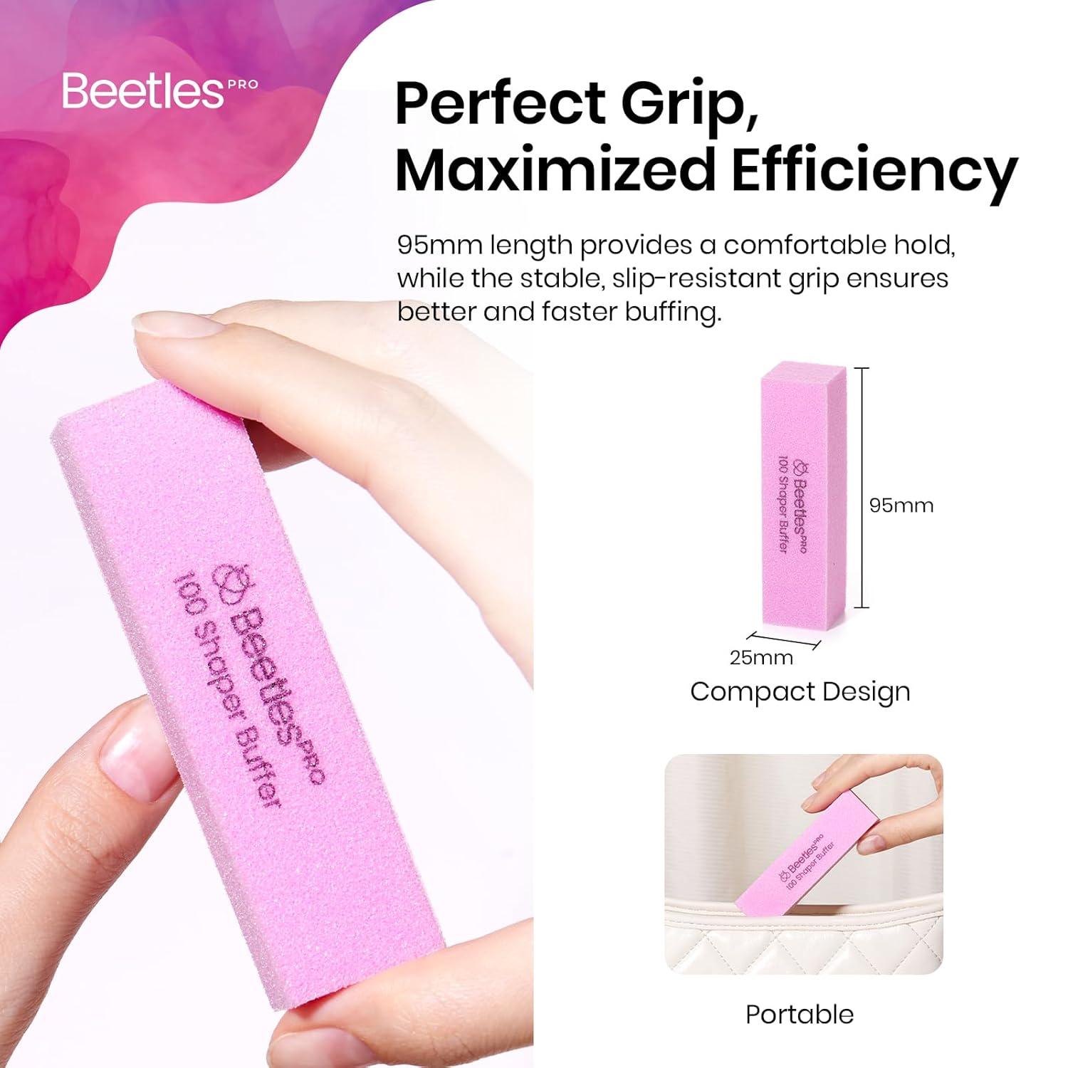 Beetles Pro 10-Pcs Nail Buffer – Professional 100 Grit Sanding Blocks Nail Files and Buffers 4-Sided Pink Nails Files for Acrylic, Gel & Natural Nails – Salon Quality Manicure Tool(10 Pcs Nail Buffer Block 100 Grit)