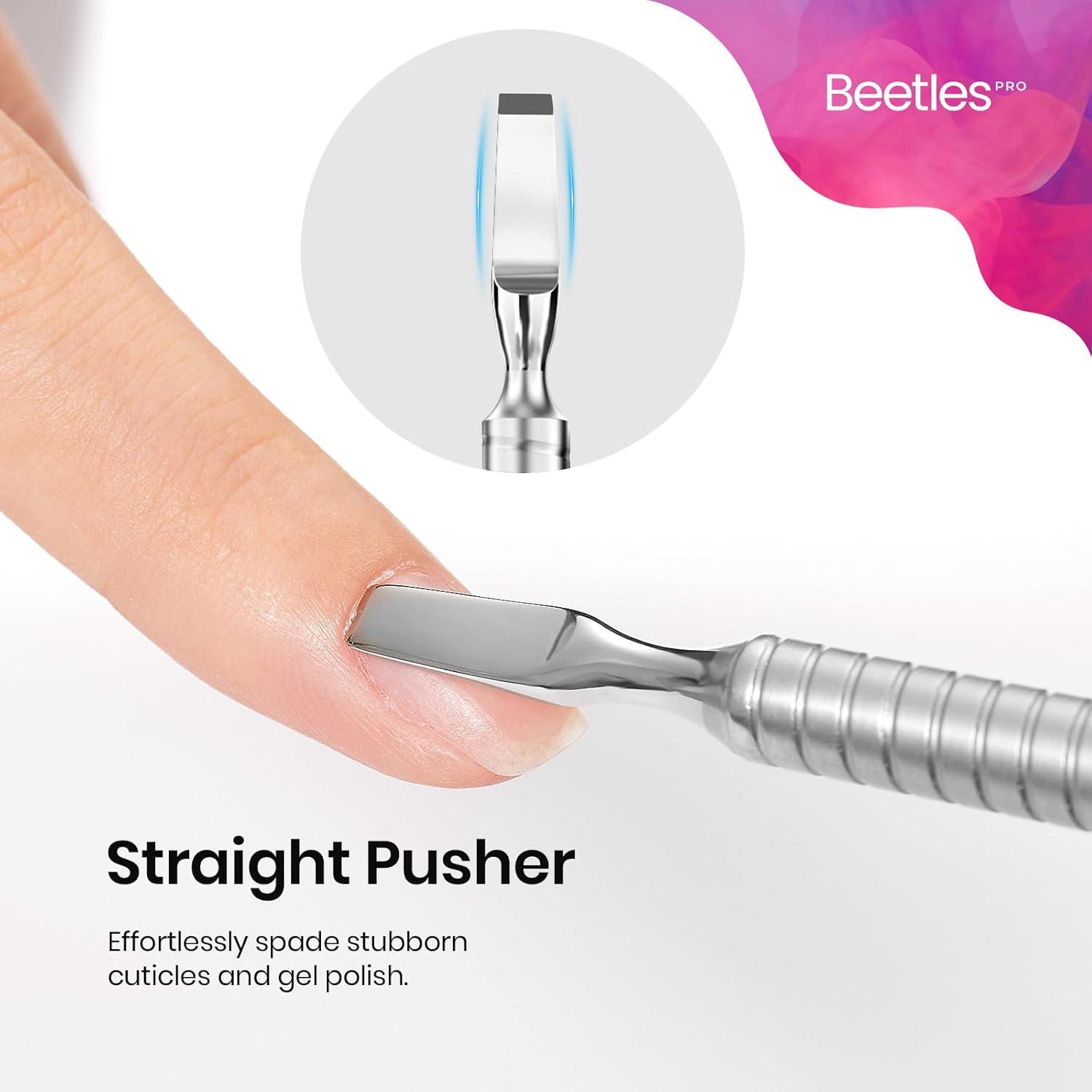 Professional Cuticle Pusher: The Beetles Professional Nail Cuticle Pusher Pro is dual ended with 23mm loop pusher and 9mm beveled pusher. The handle has anti-slip threads, which can evenly distribute force and will not make your hands tired after holding it for a long time.