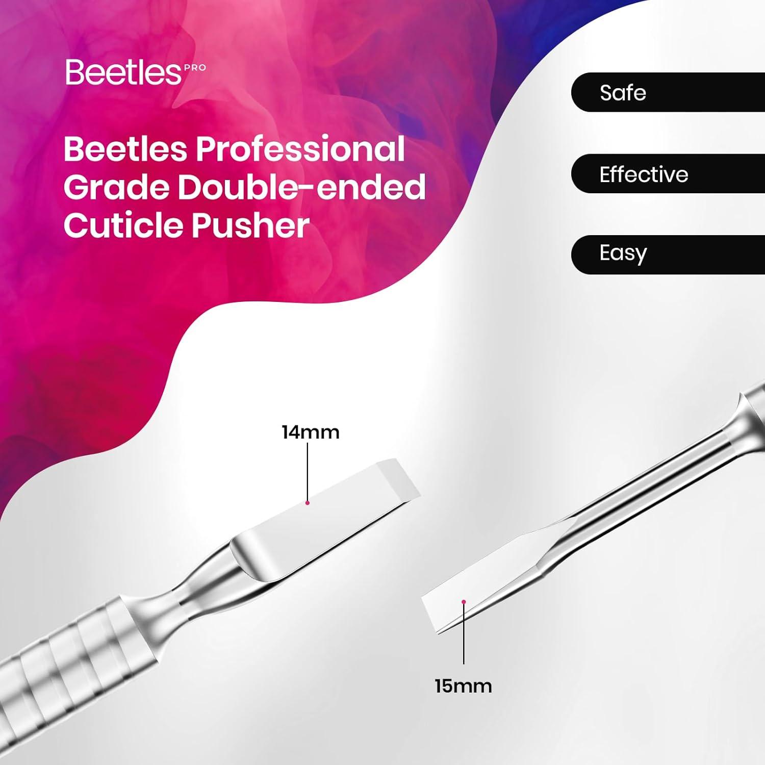 Beetles Pro Cuticle Pusher, Professional Stainless Steel Cuticle Remover Multi-Function Dual Ended Nail Pusher for Fingernail Toenail Nail-Care Salon Manicure Needs(Straight Pusher(14mm) & Straight Blade(15mm))