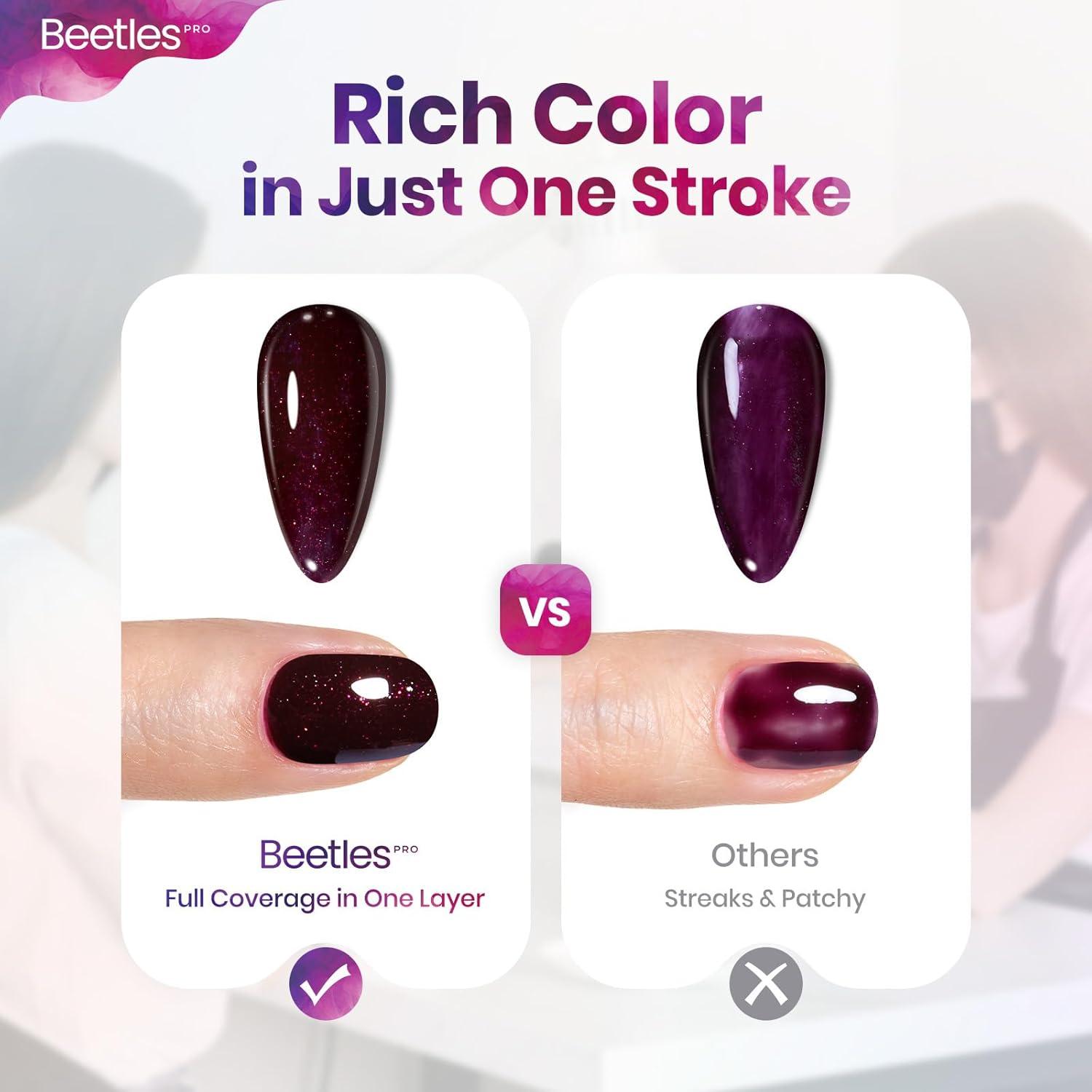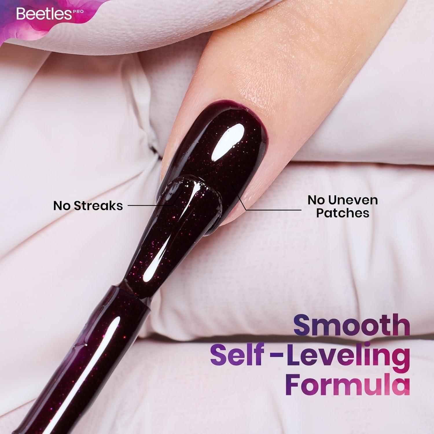Self-Leveling & No Overflow: Medium-thick texture ensures excellent control—no leaking, no flooding, and no brush marks. The Beetles Pro cherry mocha burgundy red gel levels itself beautifully for a flawless glossy surface.