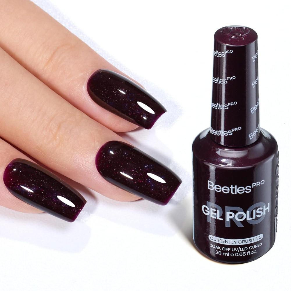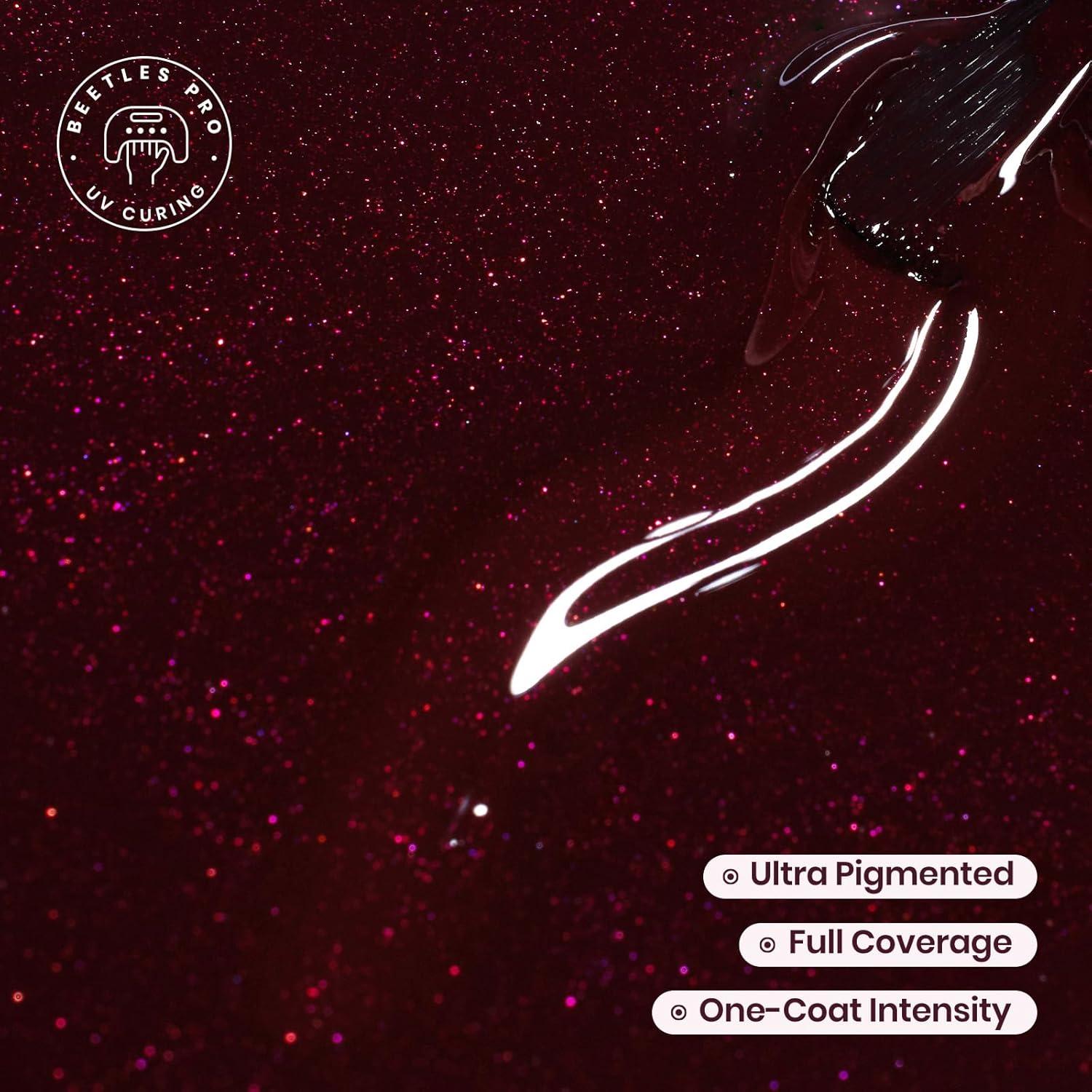 Beetles Pro Shimmer Gel Polish - Emotional Support Red, Cherry Mocha Burgundy Color 20ML Glitter Gel Polish, UV Nail Lamp Cure Needed Nail Arts Salon-Quality Shine Long Lasting(Currently Crushing)