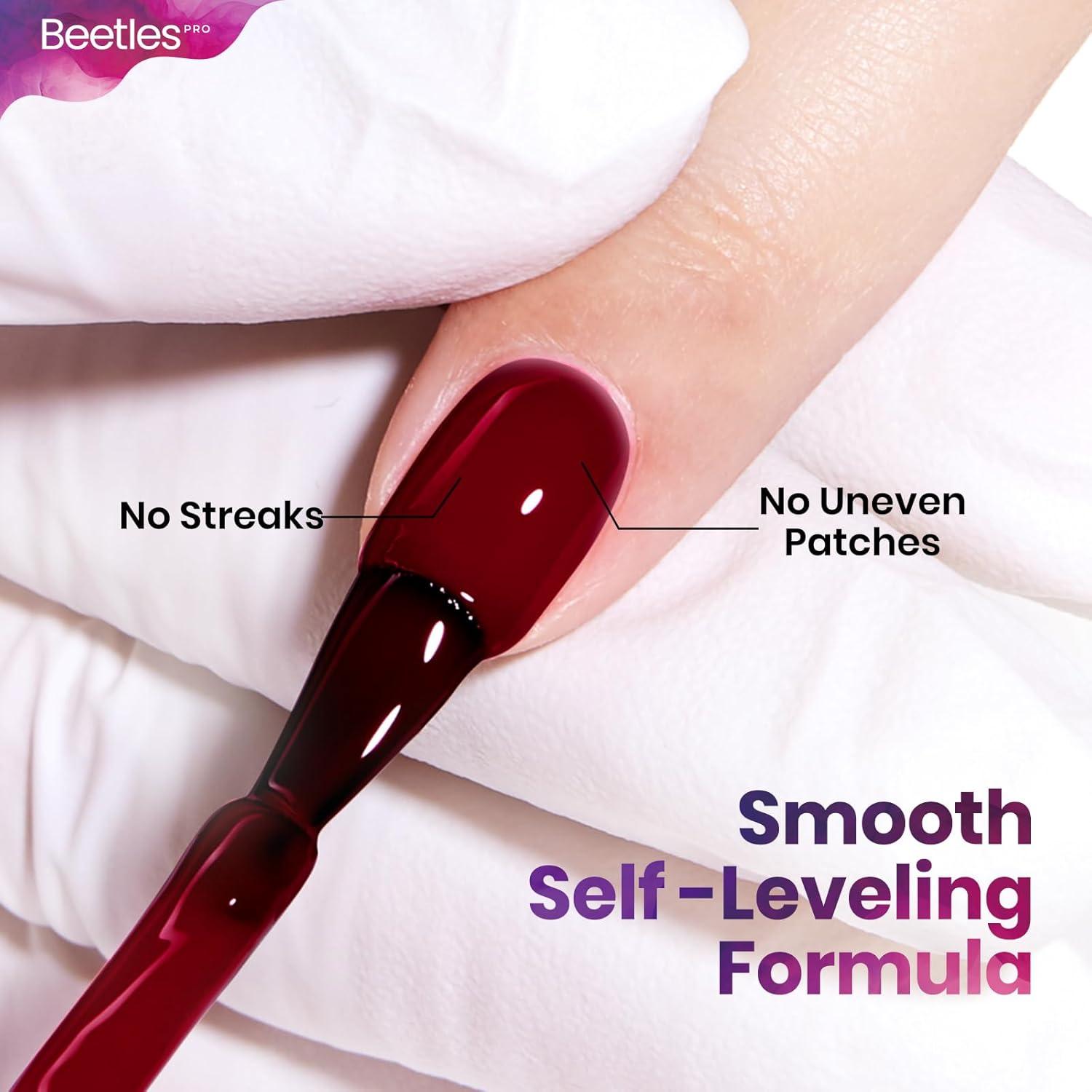 Self-Leveling & No Overflow: Medium-thick texture ensures excellent control—no leaking, no flooding, and no brush marks. The Beetles Pro cherry mocha burgundy red gel levels itself beautifully for a flawless glossy surface.