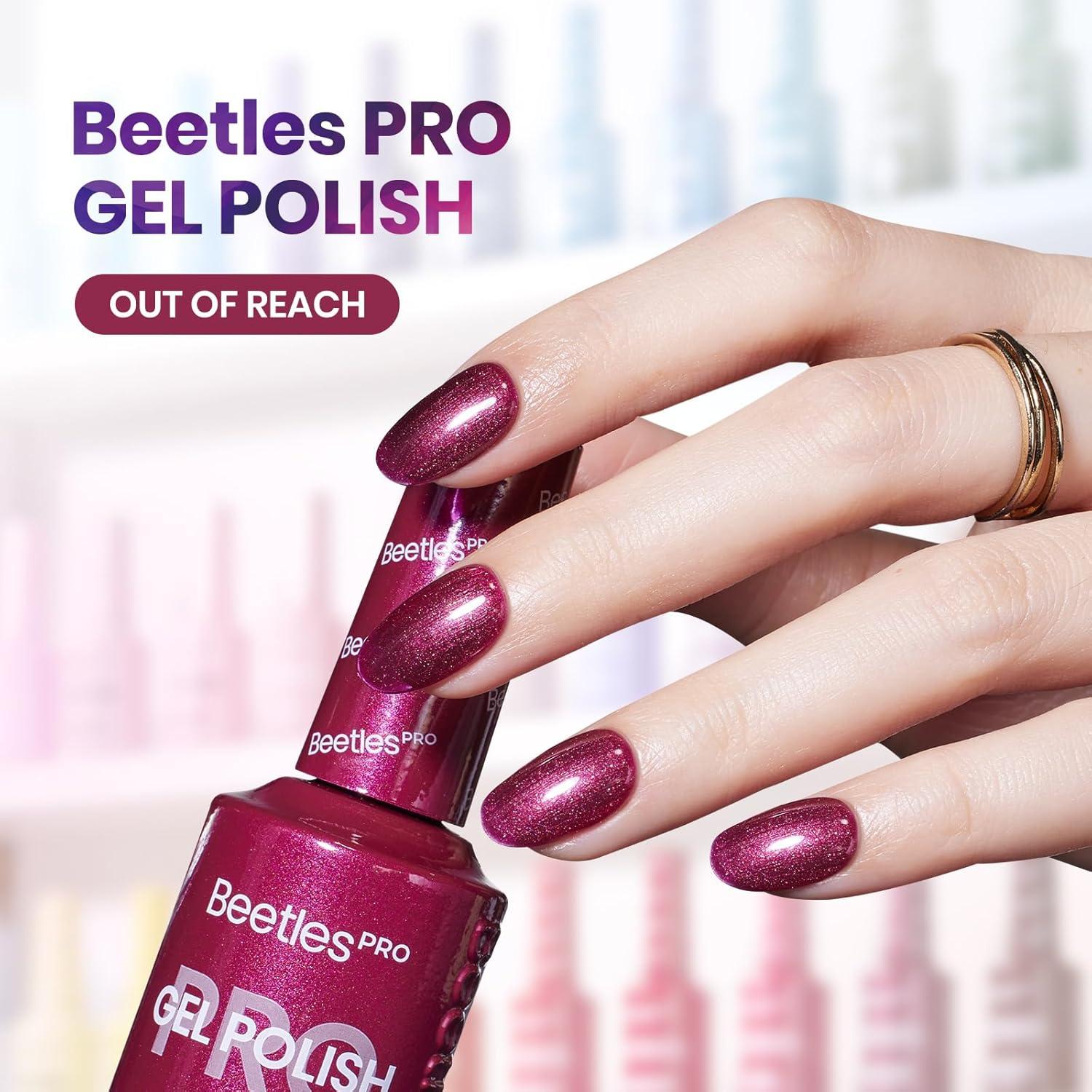 Beetles Pro Shimmer Gel Polish – Emotional Support Red, Cherry Mocha Burgundy Color 20ML Glitter Gel Polish, UV Nail Lamp Cure Needed Nail Arts Salon-Quality Shine Long Lasting(Out of Reach)