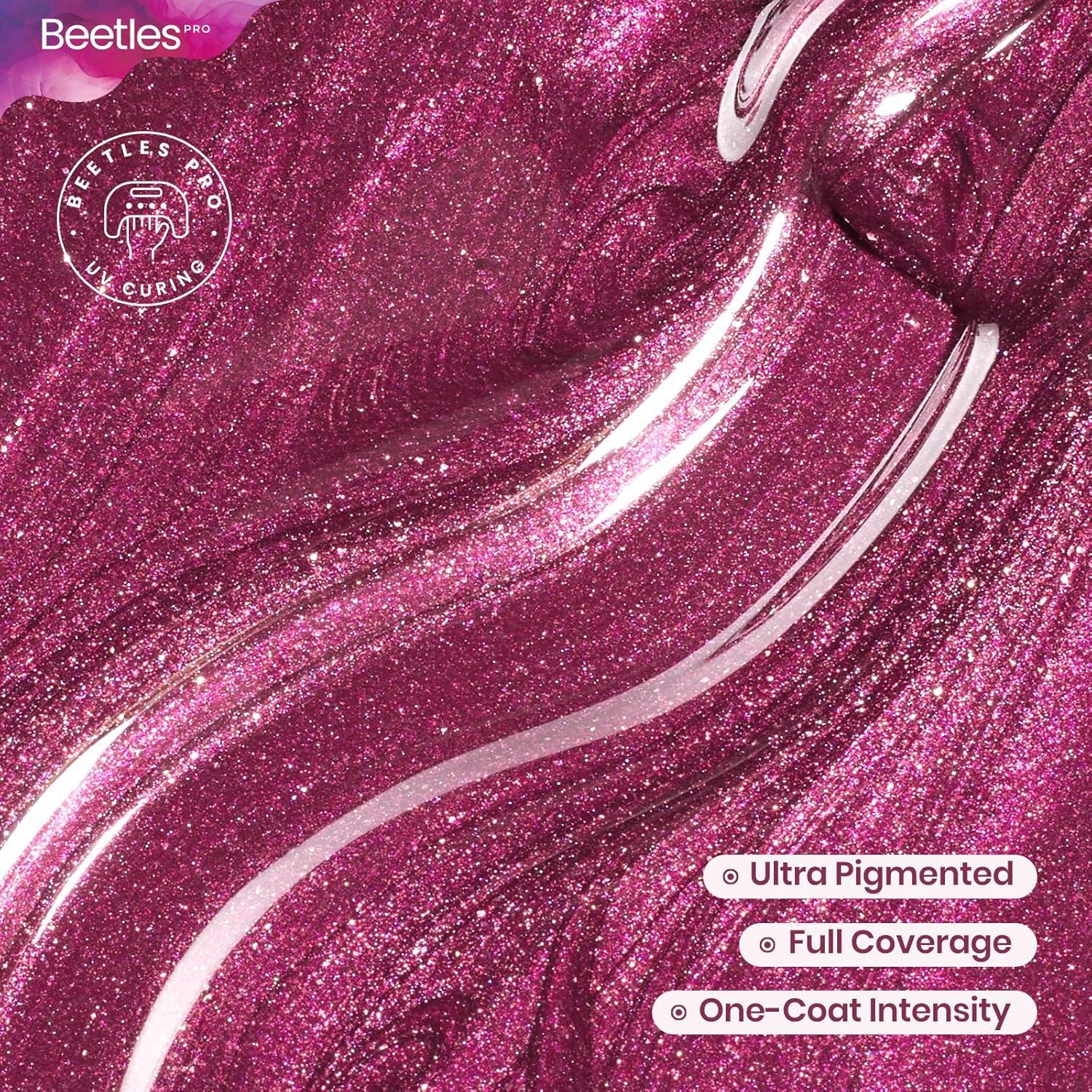Beetles Pro Shimmer Gel Polish - Emotional Support Red, Cherry Mocha Burgundy Color 20ML Glitter Gel Polish, UV Nail Lamp Cure Needed Nail Arts Salon-Quality Shine Long Lasting(Out of Reach)