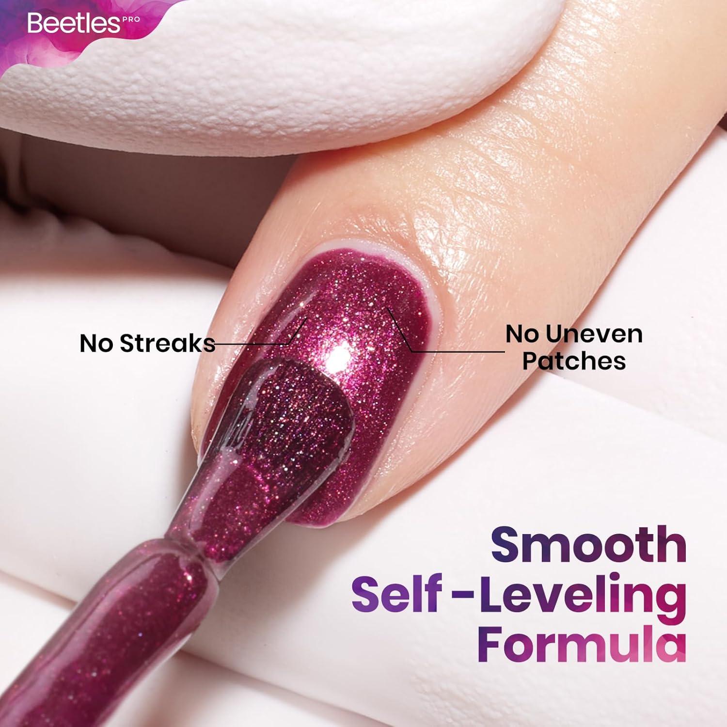 Self-Leveling & No Overflow: Medium-thick texture ensures excellent control—no leaking, no flooding, and no brush marks. The Beetles Pro cherry mocha burgundy red gel levels itself beautifully for a flawless glossy surface.