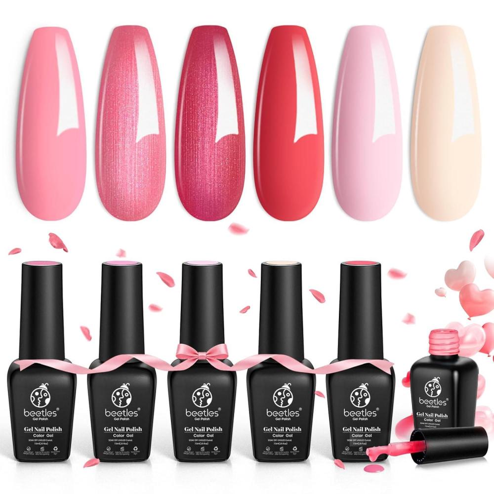 Beetles Rose Whispers Jelly Pink Gel Nail Polish Set – 6 Colors Valentines Gel Polish Kit Jelly Pink Sheer Translucent Effect Soak Off UV Salon DIY Manicure Spring Gift for Women(0-Fall in Love Pink)