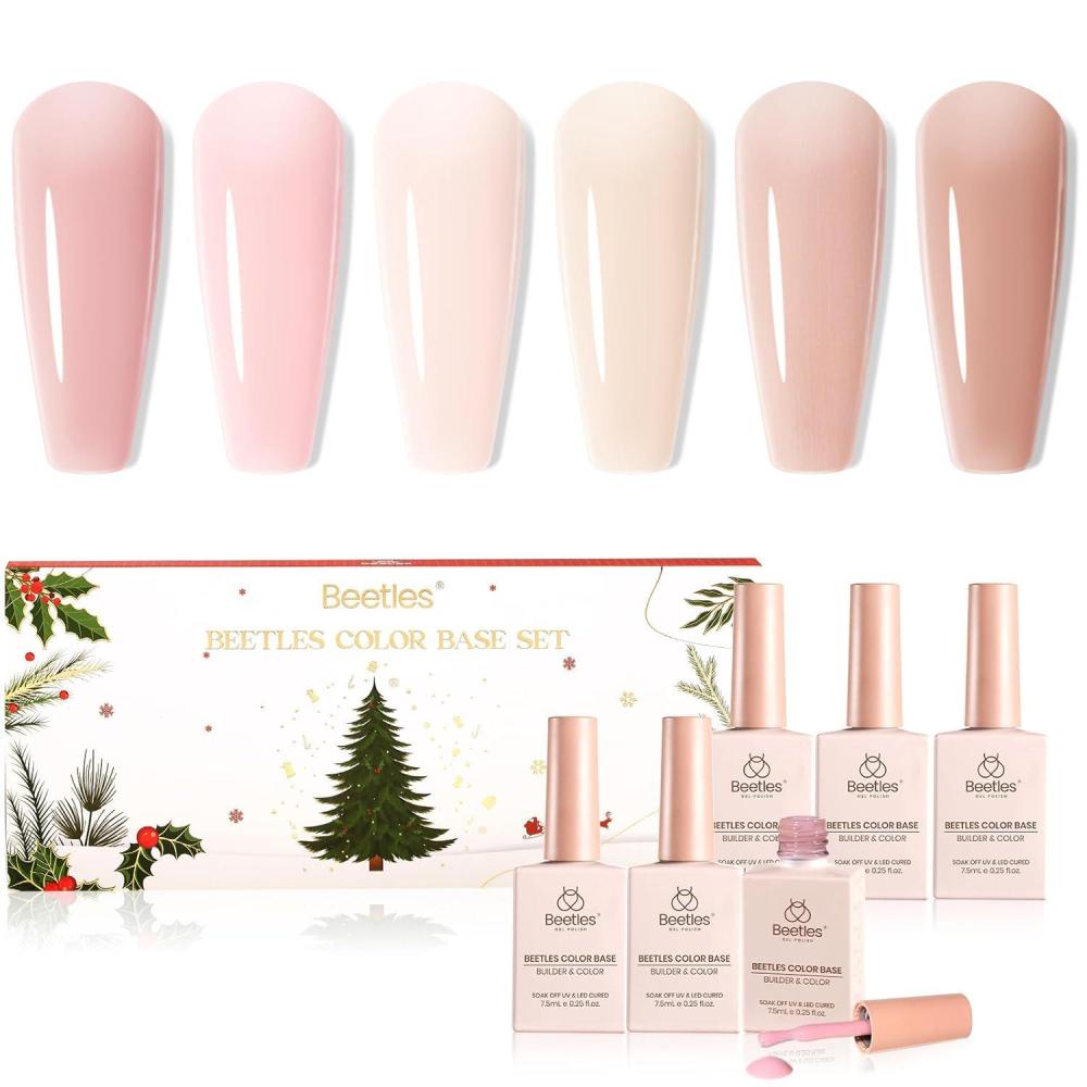 imageBeetles Rubber Base Gel Nail Polish  Christmas Limited 6 Colors Nude Gel Polish Pink Peach Neutral Sheer Base Colors for French Nail Tips Flexible U V LED Soak Off DIY Home Manicure Winter Gifts
