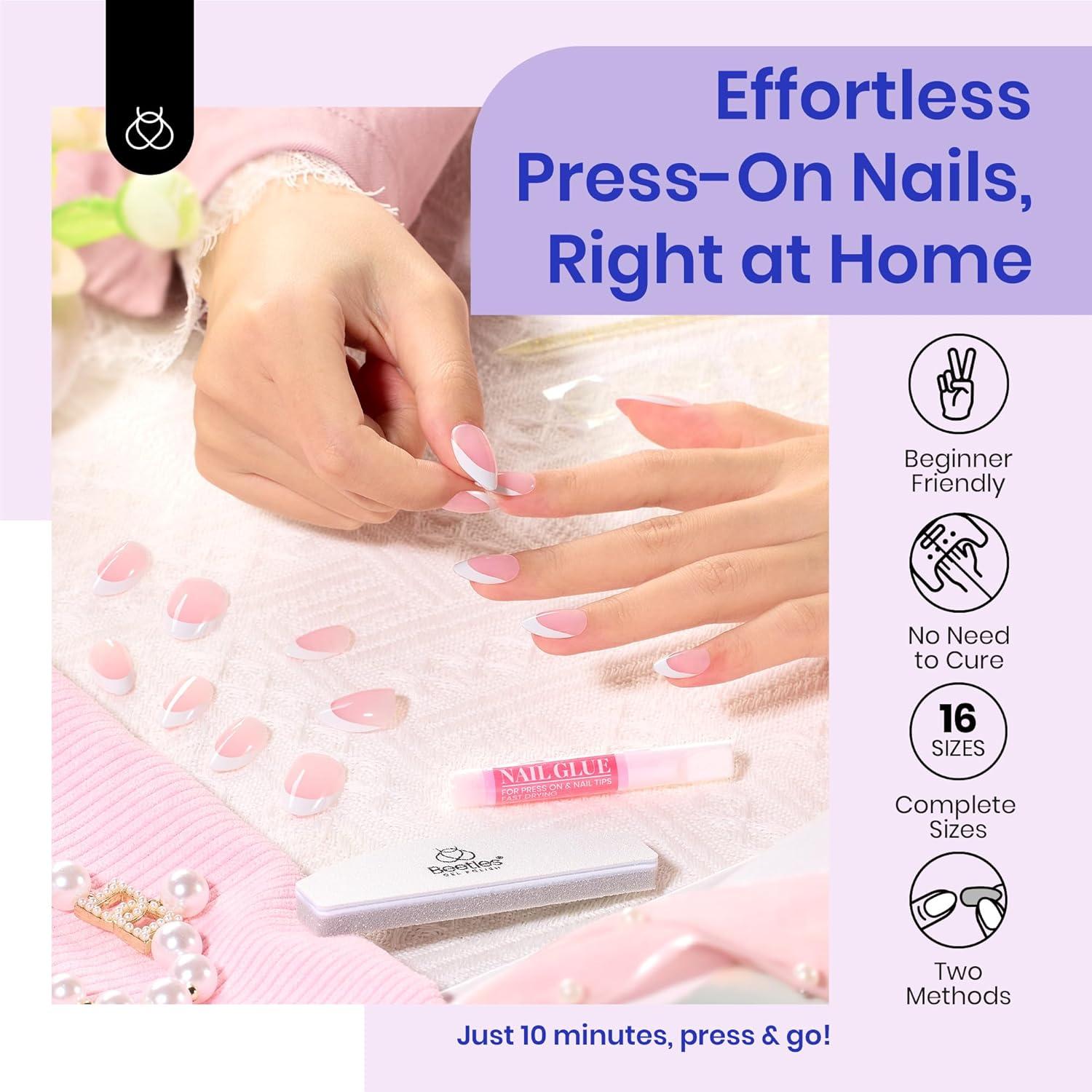 【Ideal for French Nails Manicure】Beetles French Tip Press On Nails Set includes 16 Sizes 64 Pcs Pink Short Squoval Press On Nails, 2ml*1 Quick-Drying Nail Glue, 3*Adhesive Tabs, 1* Manicure Stick and 1*Mini Nail File.You can create your unique design in fewer steps