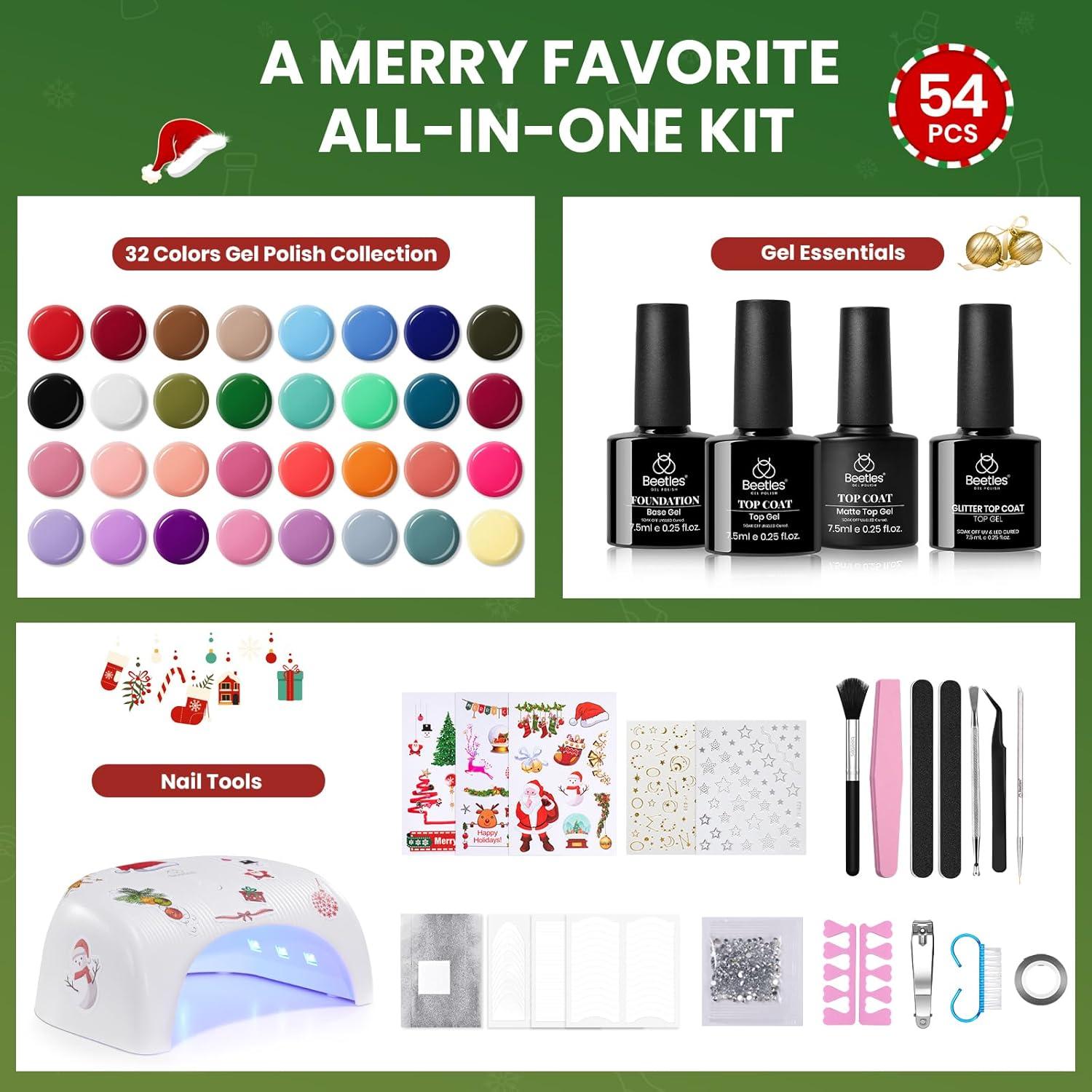 Essential Gel Nail Kit for Easy At-Home Manicure: Features essential gel nail products including base coat, top coat, specialty top coat, liner gel, nail care oil, and simple nail tools. Designed for easy application and smooth, glossy results when used with a UV/LED nail lamp. With proper application, enjoy a shiny, chip-resistant finish that lasts up to 28 days.