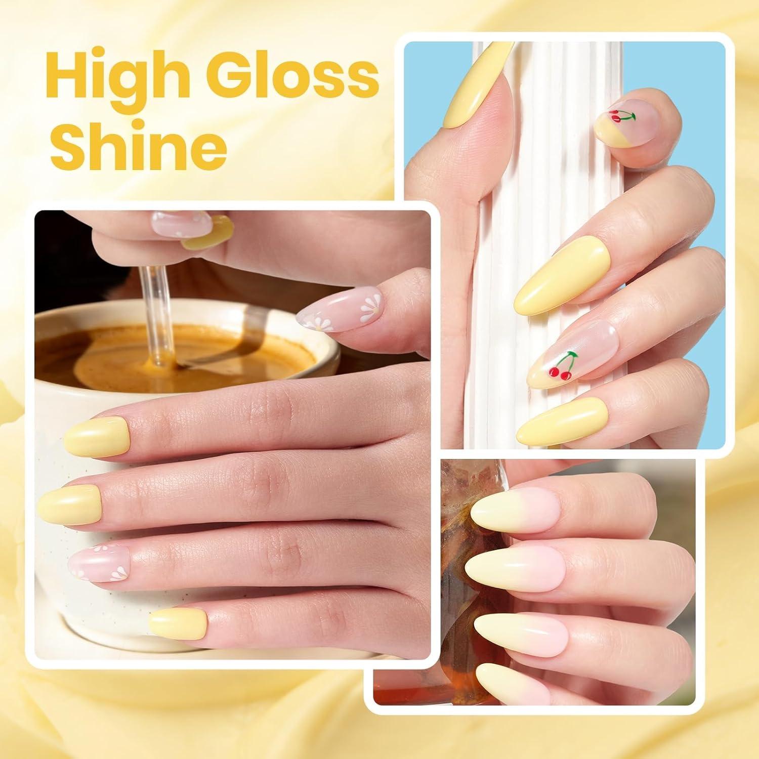 【Long-Lasting】This pastel yellow nail polish has bright color and high gloss, and lasts for at least 8 days without discoloration or paint loss. Spring nail polish is very durable, ideal for festivals or special occasions, and also an ideal gift for nail lovers!