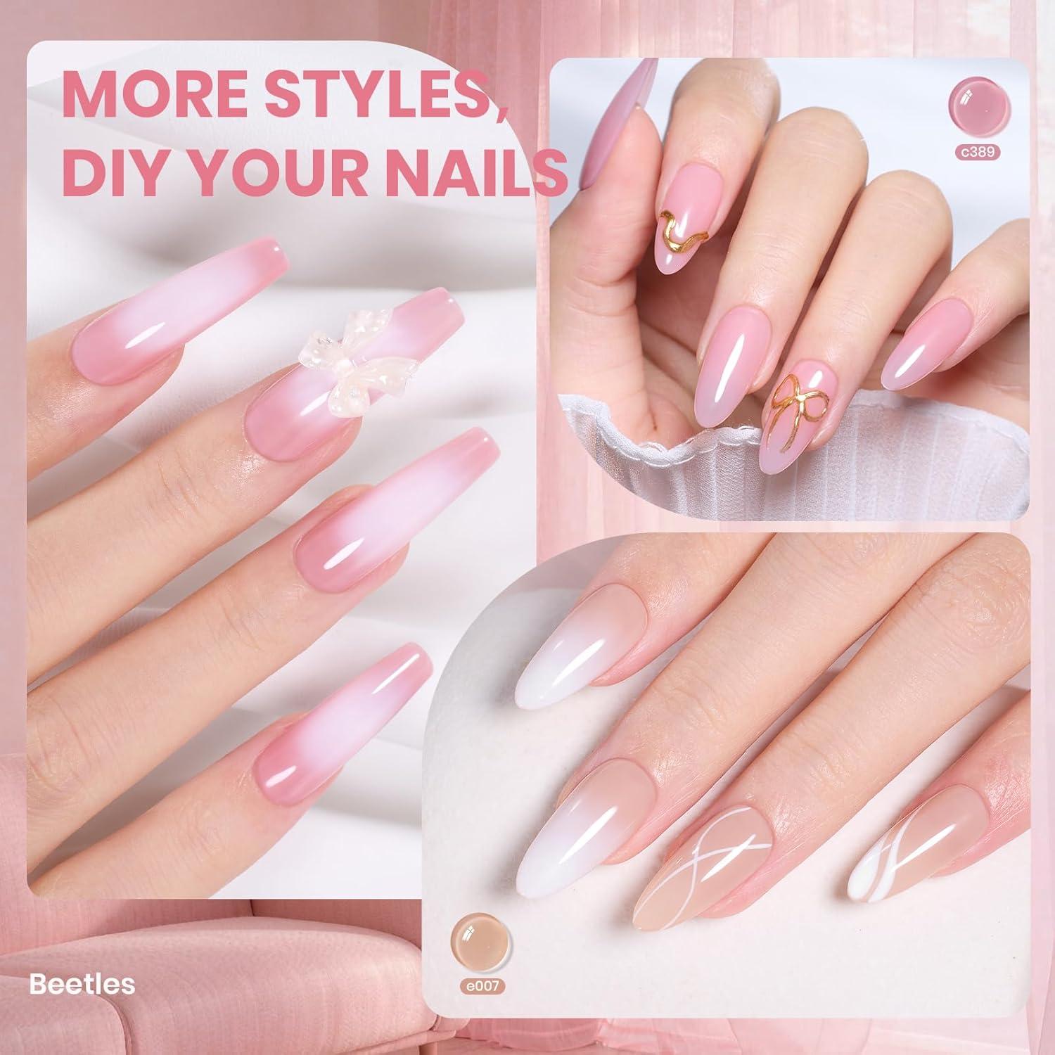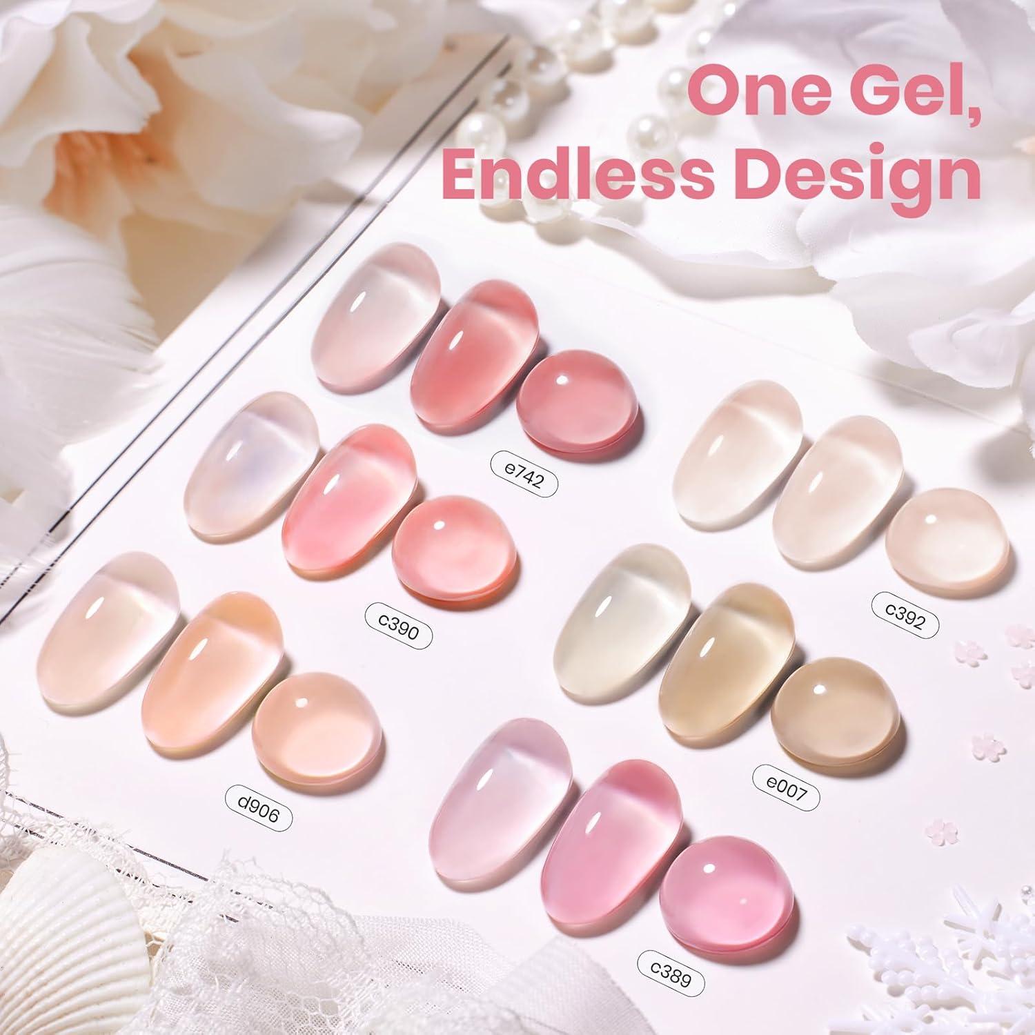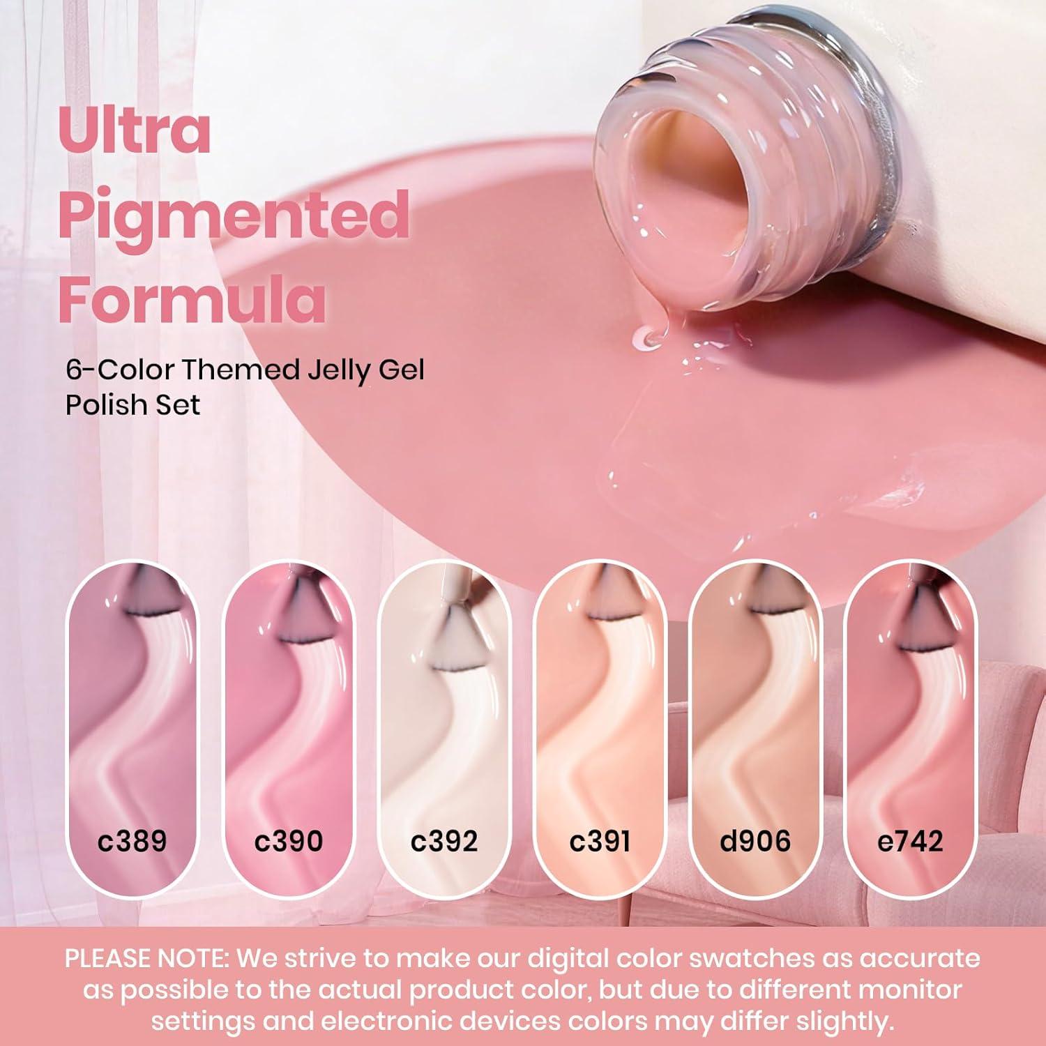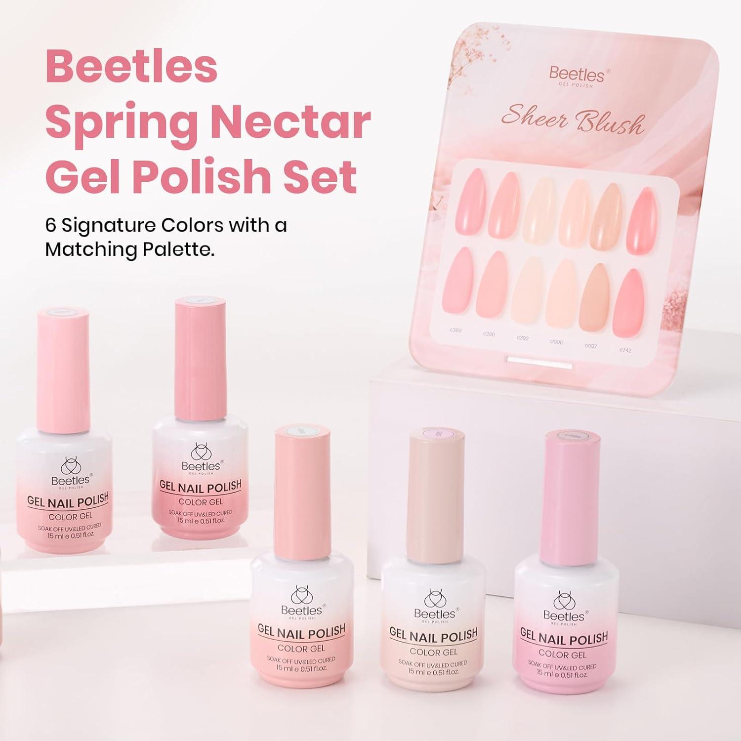 Beetles Spring Nectar Jelly Gel Nail Polish Set - 6 Colors 15ML Pastel Gel Polish Kit Pink Purple Blue Mint Green Yellow Sheer Translucent Effect Soak Off UV Nail Art Manicure Gift for Women(0-0-0-Sheer Blush)