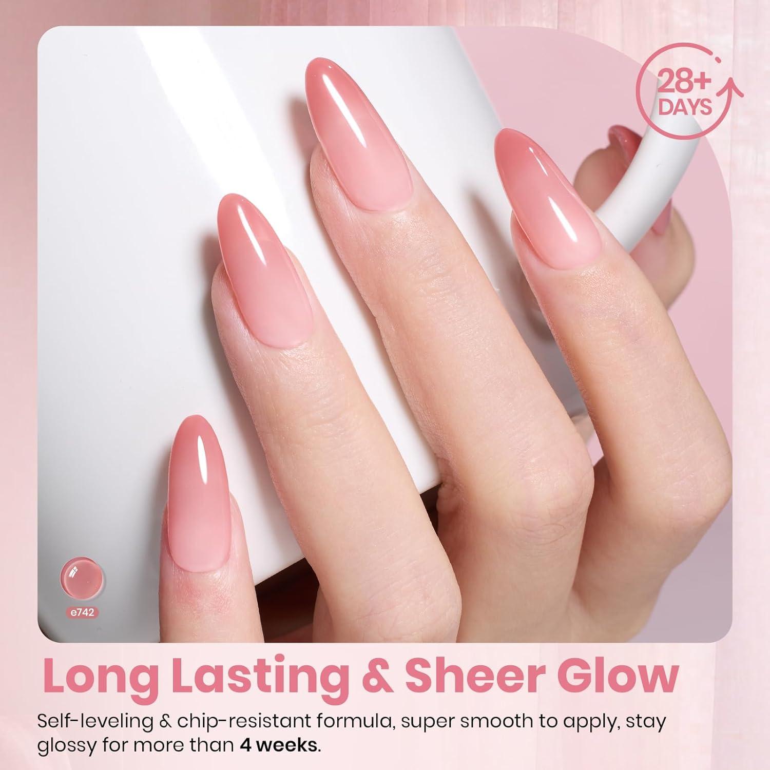 imageBeetles Spring Nectar Jelly Gel Nail Polish Set  6 Colors 15ML Pastel Gel Polish Kit Pink Purple Blue Mint Green Yellow Sheer Translucent Effect Soak Off UV Nail Art Manicure Gift for Women000Sheer Blush