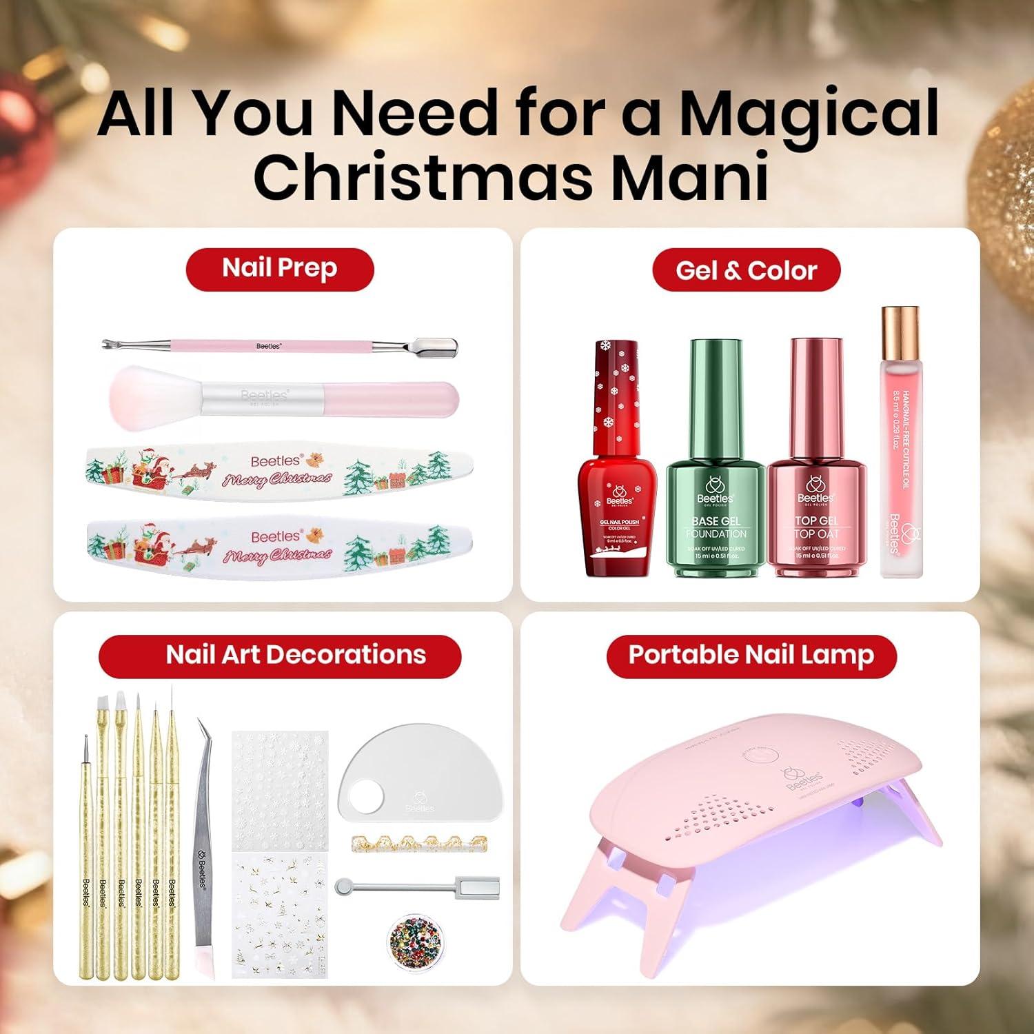 Beetles Spring Pudding Jelly Gel Nail Polish Set – 28PCS 20 Colors Jelly Pink Purple Red Blue Green Glitter Silver Cat Eye Base Glossy Matte Top Coat French Nails Gift for Women(1 – Merry Glitz)