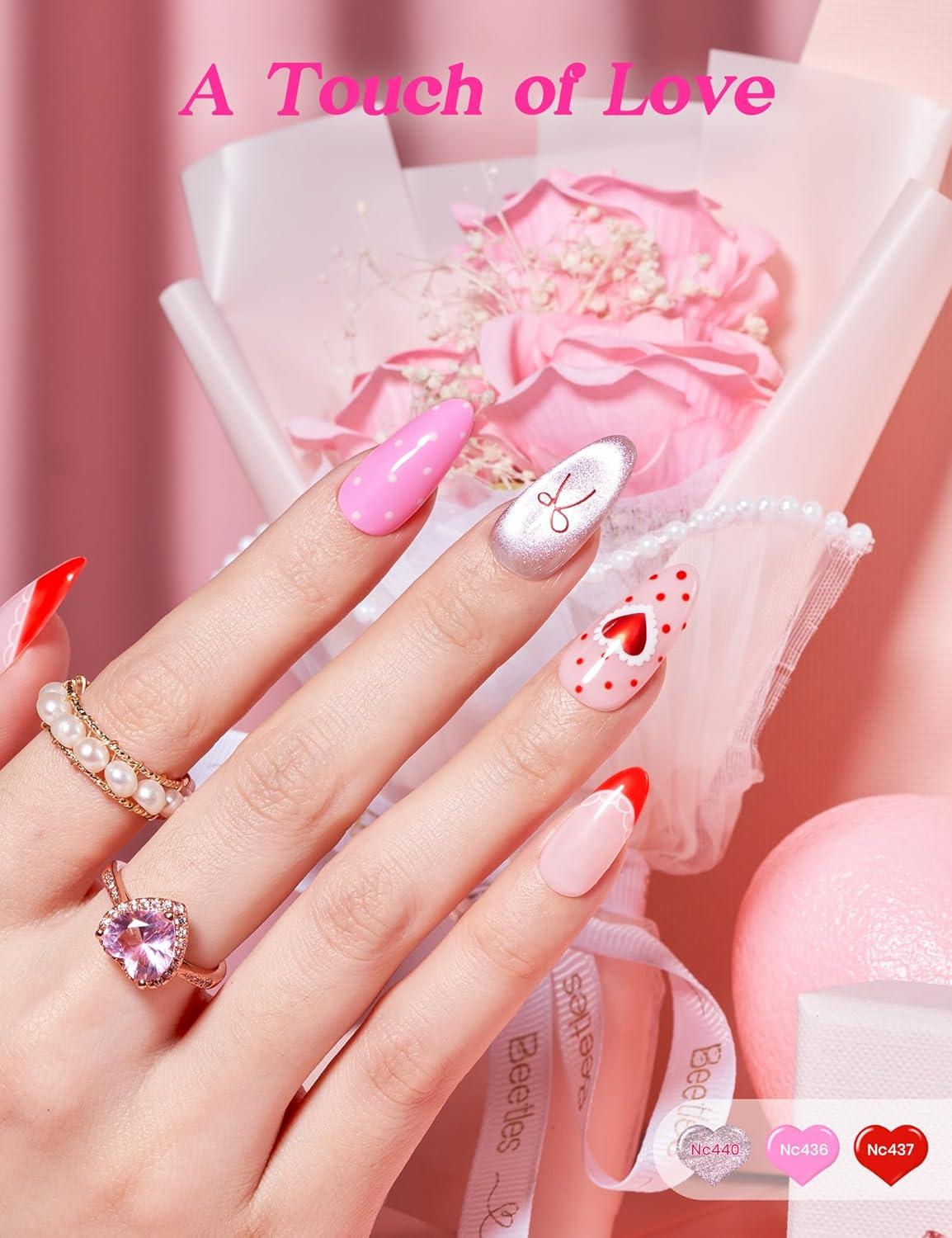 imageBeetles Spring Pudding Jelly Gel Nail Polish Set  28PCS 20 Colors Jelly Pink Purple Red Blue Green Glitter Silver Cat Eye Base Glossy Matte Top Coat French Nails Gift for WomenGlow In Love