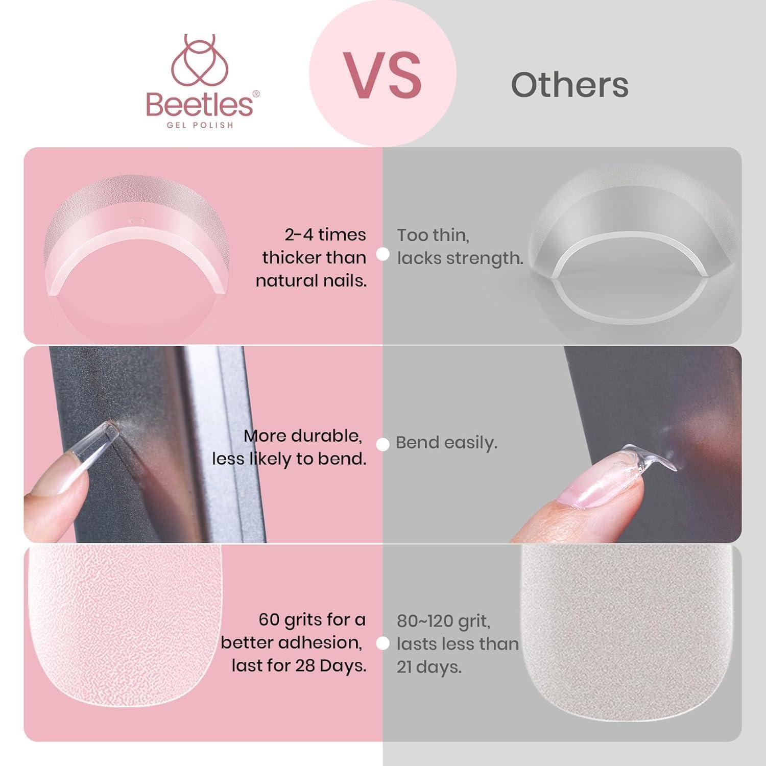 imageBeetles Super Strong Nail Glue 10g for Press On Nails No Uv Lamp Needed Quick Drying Long Lasting Easy Control Semi Solid Nail Glue for False Acrylic Nails34Square Medium 288pcs Etch X Nail Tips