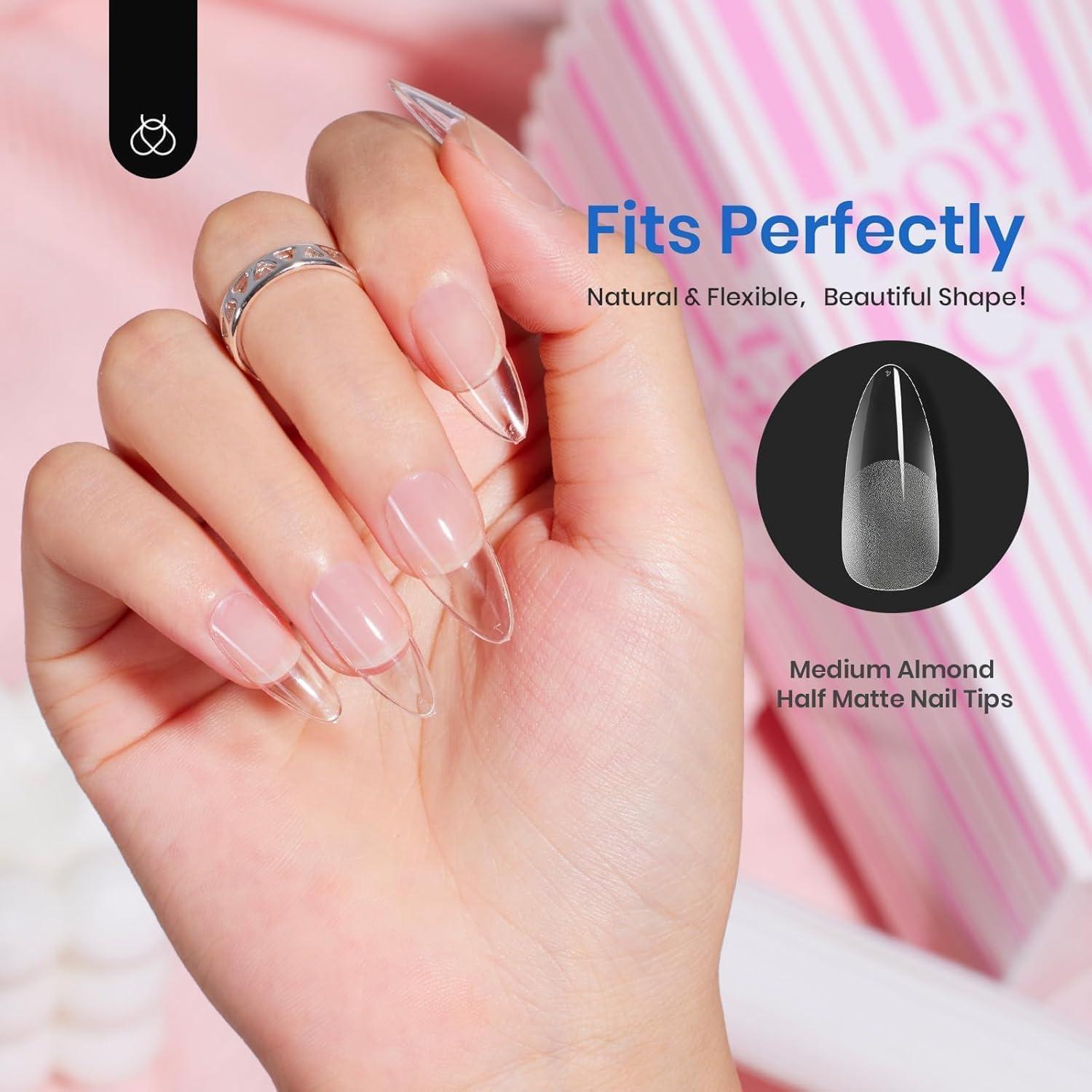 Beetles Super Strong Nail Glue for Press On Nails, No UV Light Needed, 2Pcs 10g Quick Drying Semi Solid Nail Glue, Strong Hold for False & Acrylic Nails(7-2-Almond Medium 504pcs ( Etch X Nail Tips))