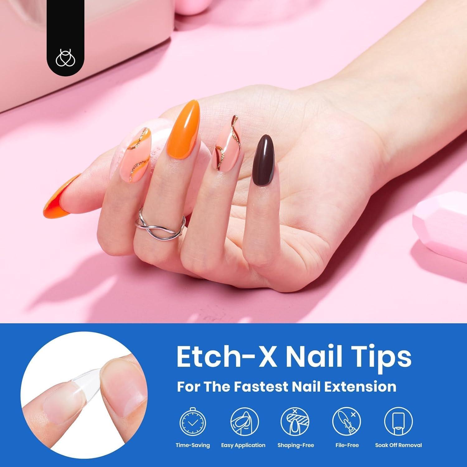 imageBeetles Super Strong Nail Glue for Press On Nails No UV Light Needed 2Pcs 10g Quick Drying Semi Solid Nail Glue Strong Hold for False amp Acrylic Nails72Almond Medium 504pcs  Etch X Nail Tips
