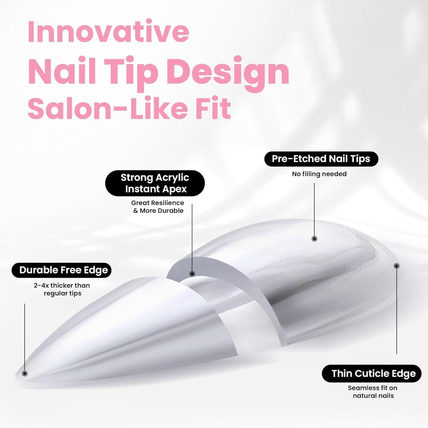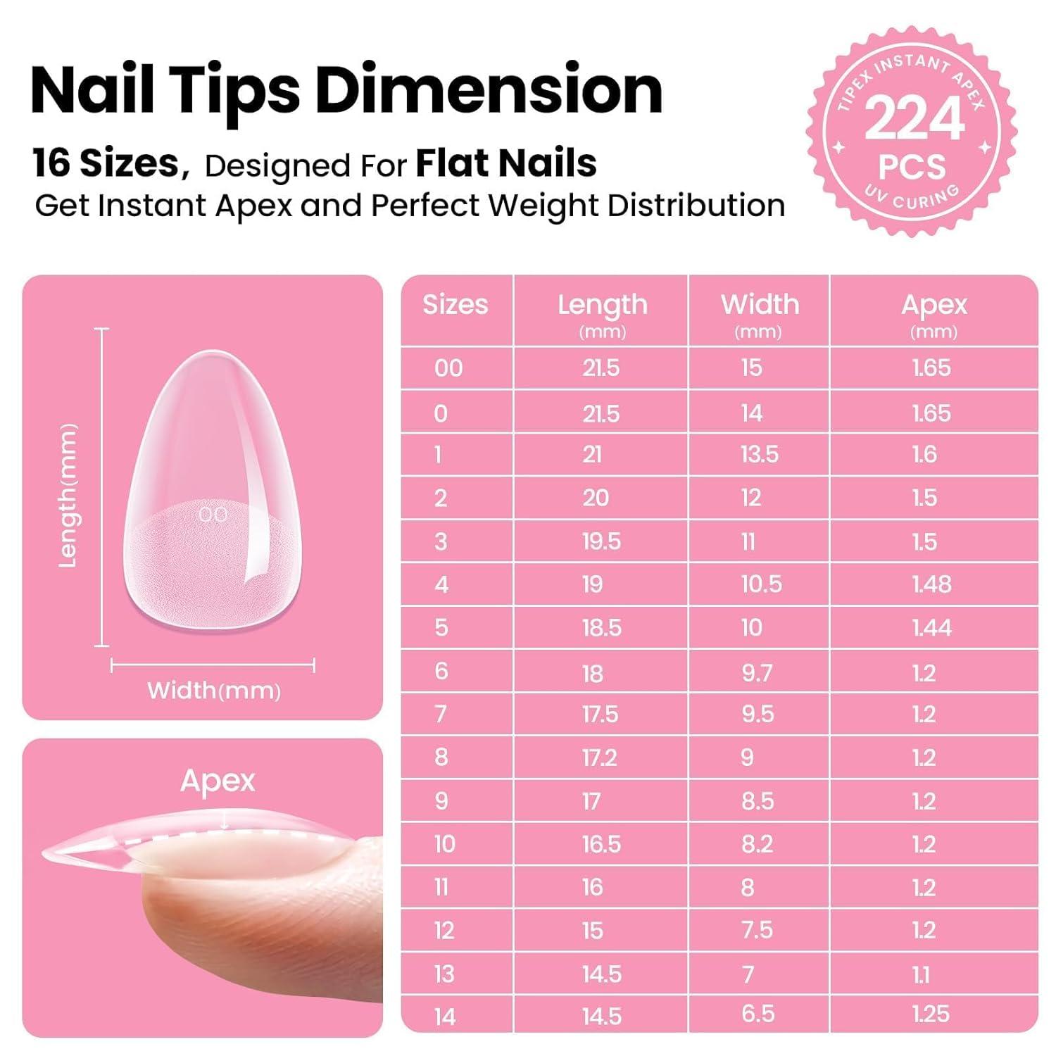 imageBeetles Tipex Instant Apex Nail Tips Kit  Almond Medium 224PCS 16 Sizes  PreEtched Thick Full Cover Acrylic Tips with Tipex Nail Glue Dehydrator Primer Base ampamp Top Coat Mini UV Lamp16Coffin Long 224pcs Tipex Nail Kit