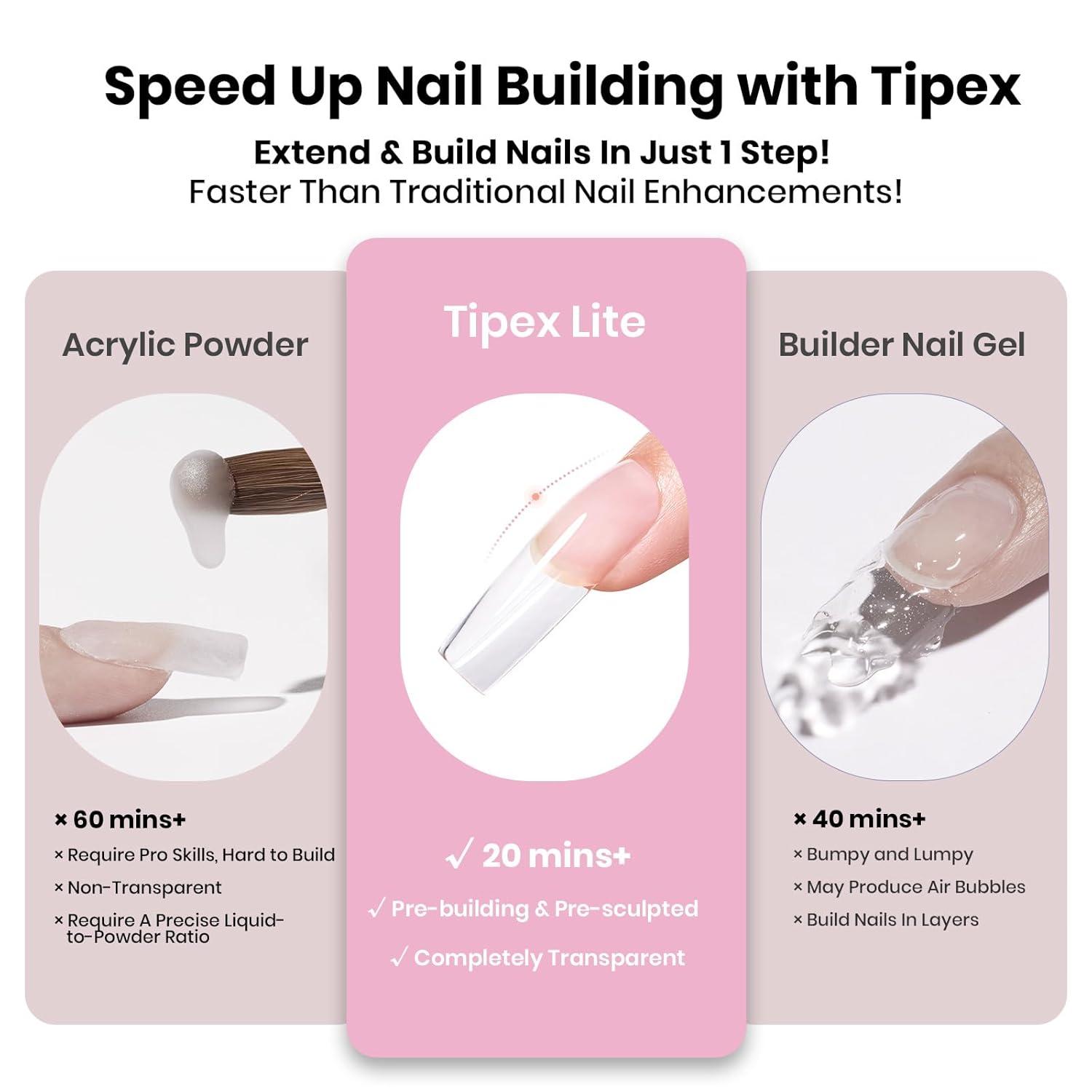 imageBeetles Tipex Lite Apex Nail Tips Kit Almond Short 192pcs 16 Sizes with UV Nail Glue Base ampamp Top Coat Mini Nail Lamp Nail Clipper ampamp Cuticle NipperPreBuilding PreEtched Acrylic Tips KitTipex LiteSquare Short 192pcs Kit