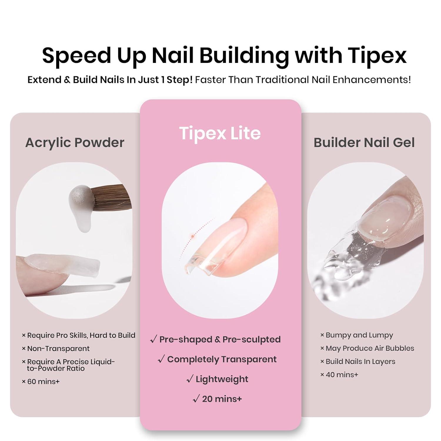 imageBeetles Tipex Lite PreBuilt Apex Nail Tips Kit Square Short 256pcs 16 Sizes with Tipex Nail Glue Dehydrator Primer Base amp Top Coat Mini UV Lamp AllinOne Gel Nail Kit2ETipex LiteSquare Short 256pcs