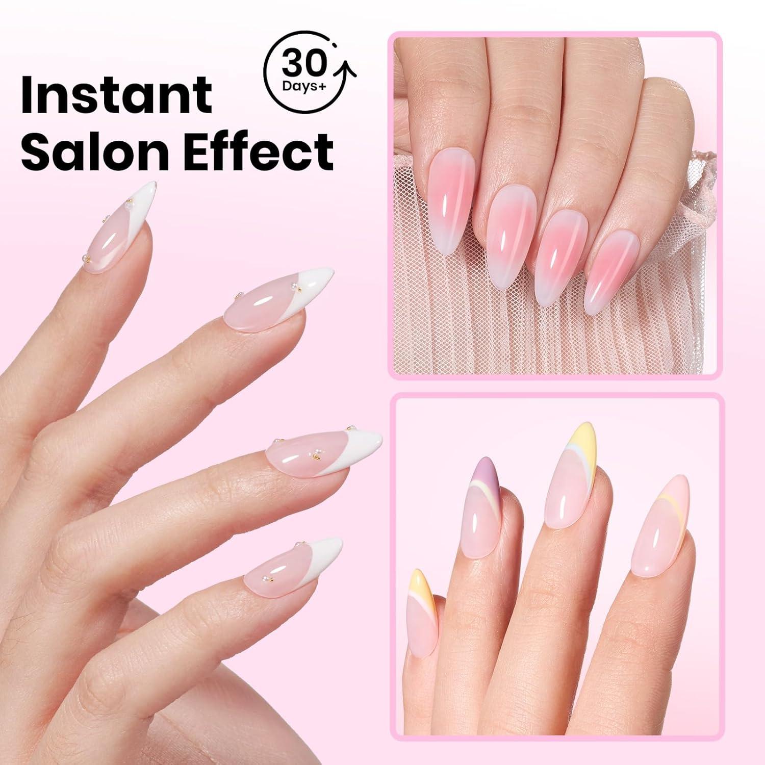 Beetles Tipex Lite Pre-Built Apex Nail Tips Kit, Square Short, 256pcs 16 Sizes, with Tipex Nail Glue, Dehydrator, Primer, Base & Top Coat, Mini UV Lamp, All-in-One Gel Nail Kit(3D-Tipex Lite Kit with Primer-Almond Short)