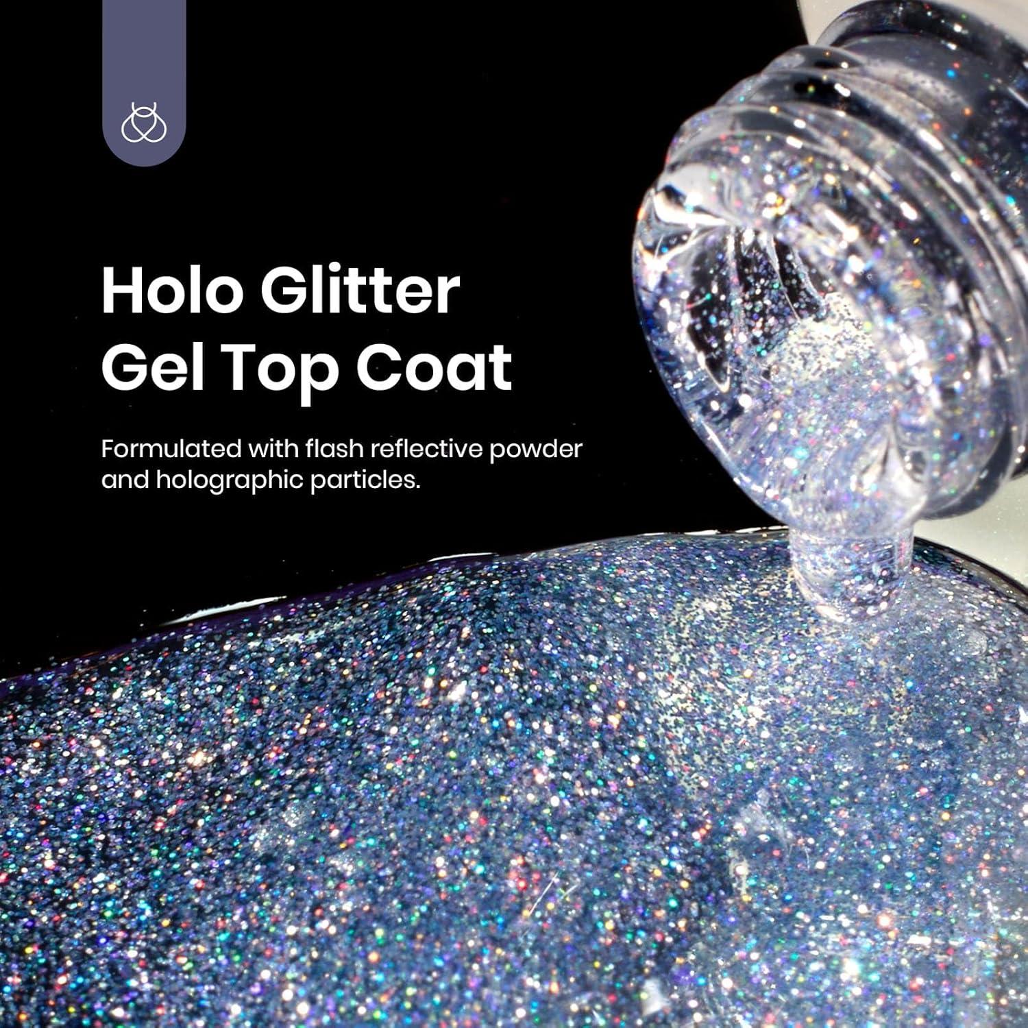 imageBeetles Valentines Day Limited Heart Gel Top Coat 15ml  Hema Free Glitter Shine No Wipe Top Coat LongLasting for Gel Polish Pink Heart Sparkle Soak Off UV LED Gift for WomenIridescent Silver Mix Glitter Top Coat
