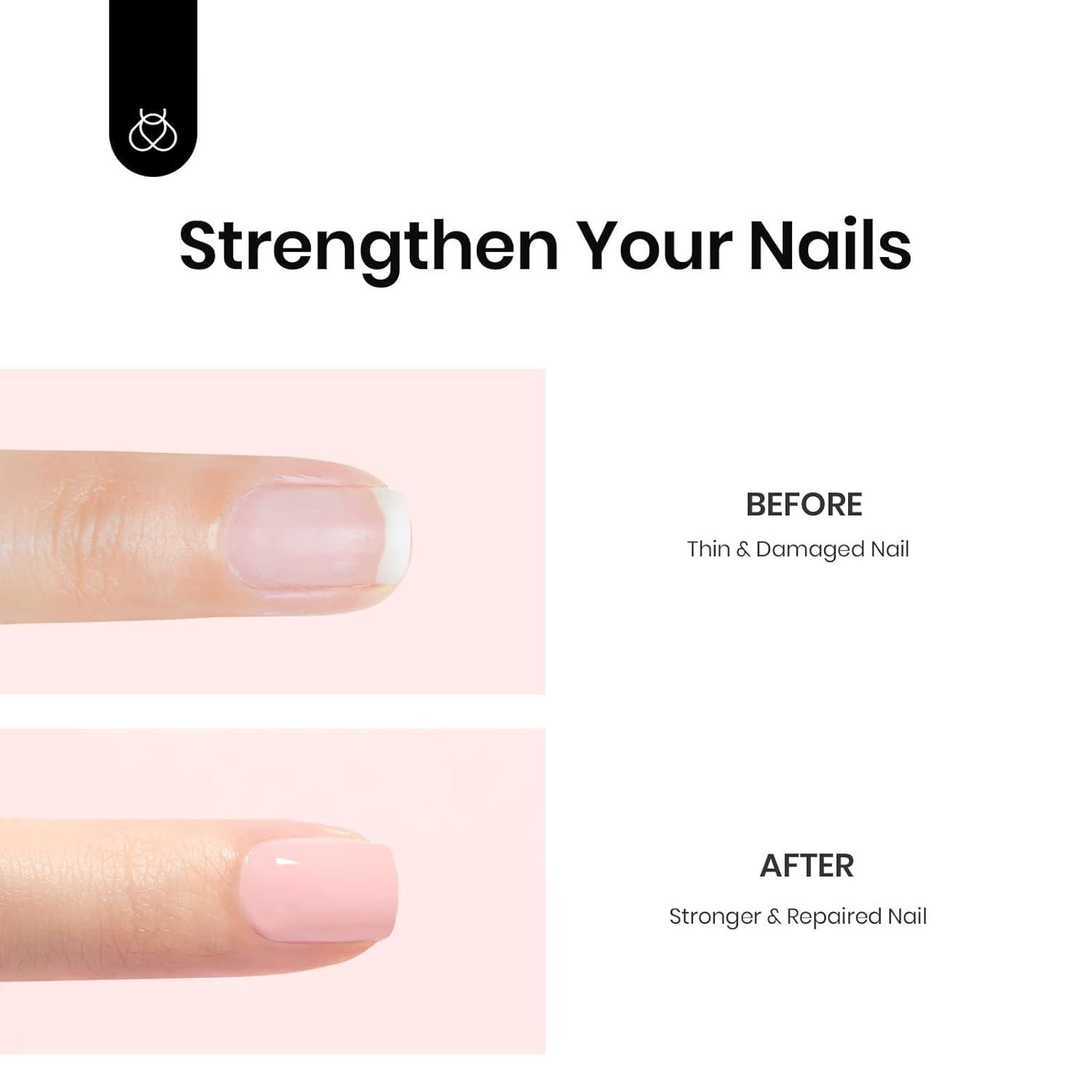 Soft Pink Base with Subtle Glitter Shine – A flexible rubber base formula that reinforces weak, thin, or peeling nails while adding natural thickness.