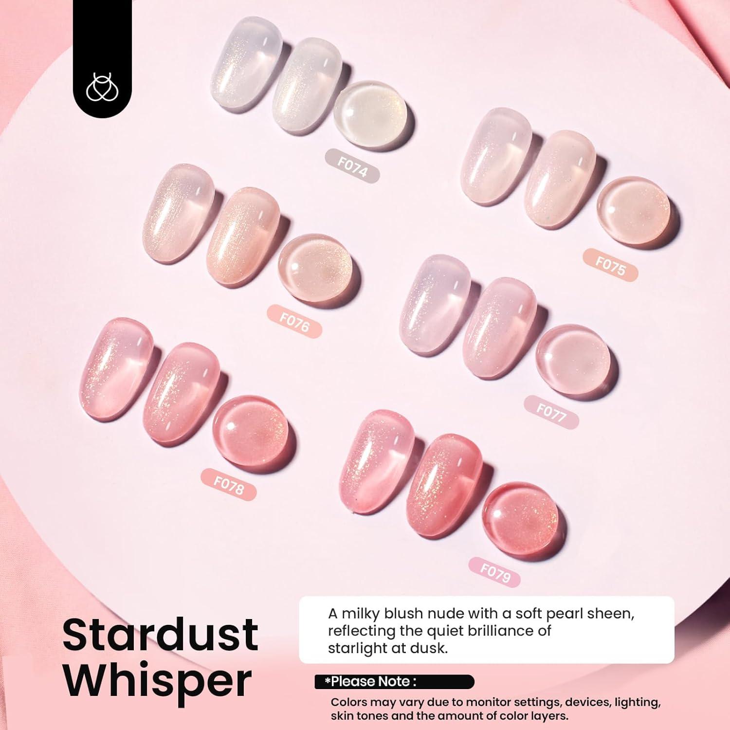 Beetles Valentine's Gel Polish Set – Pink Heart Glitter Top Coat and Rubber Base Color Gel Polish, Easy Heart & Glossy Shine Nail Art, Long Lasting Soak Off Manicure Gift for Women(Rubber Base Stardust Whisper 6Pcs)