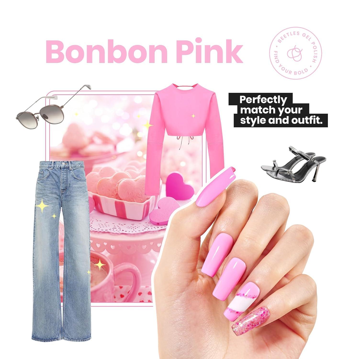 imageBeetles Valentines Nails Polish  Pink Heart Sweetheart Glow Glitter Nail Polish 15ml051Fl Oz  LongLasting Quick Dry Nail Polish DIY Nails Art Spring Valentines Nails Gifts for HerBonbon Pink